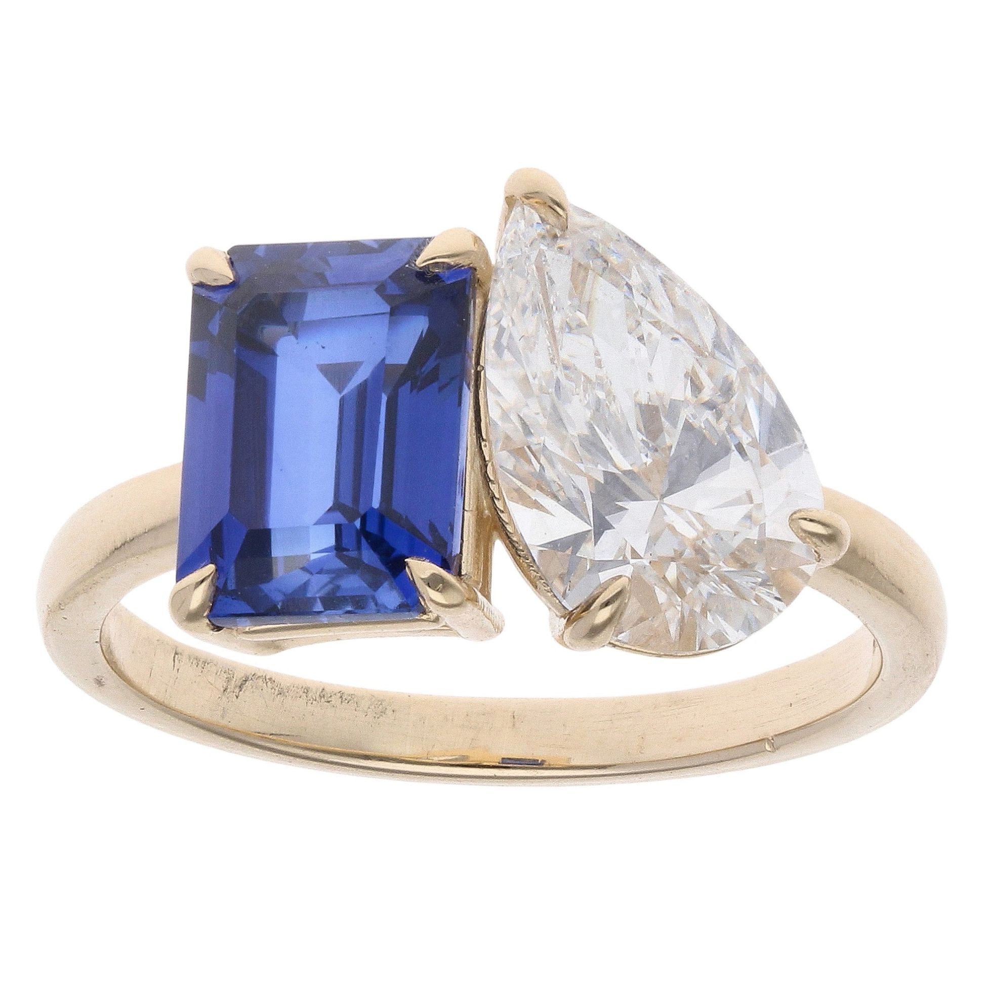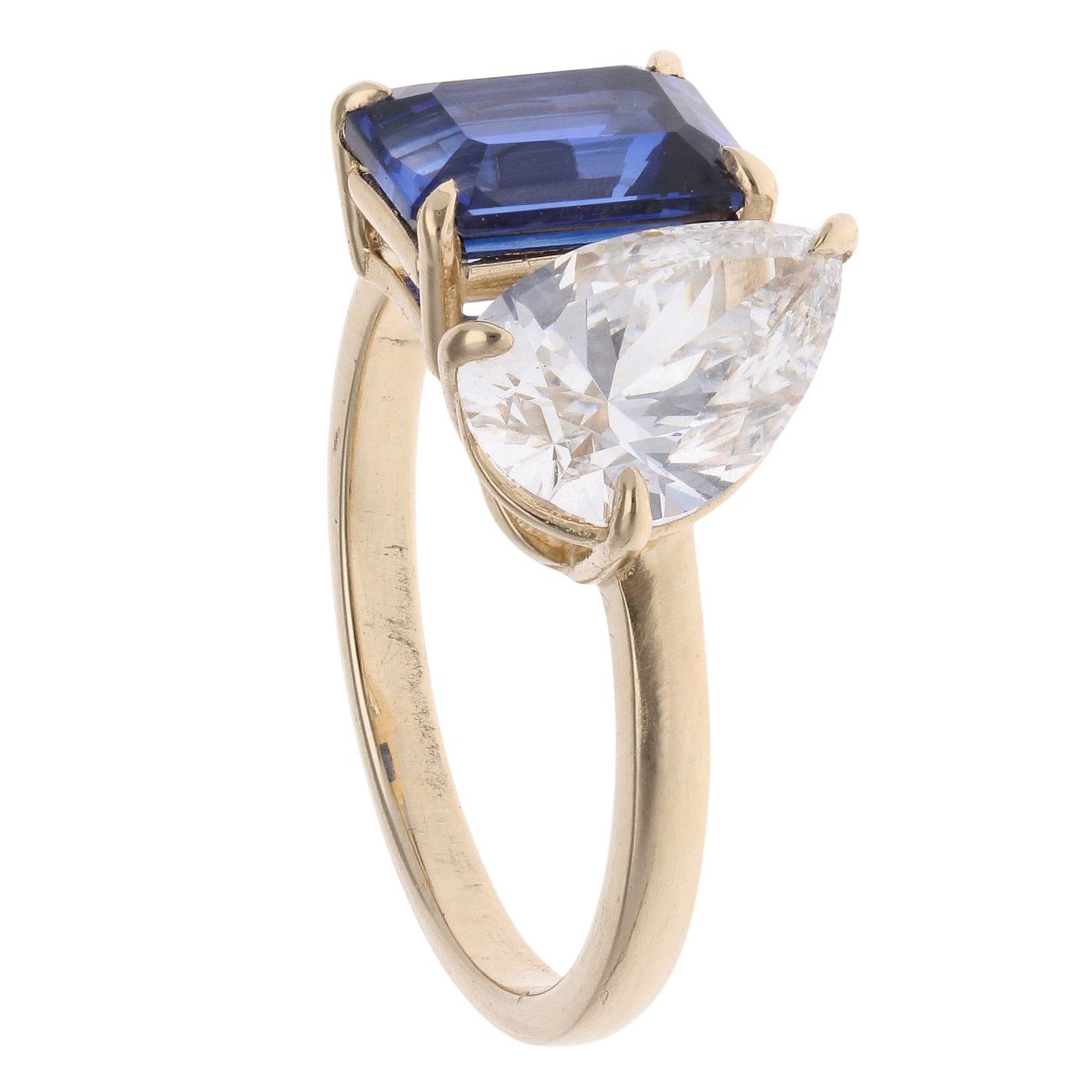 Lab Grown 9ct Yellow Gold 2.07ct Pear Cut Diamond And Created Sapphire Ring