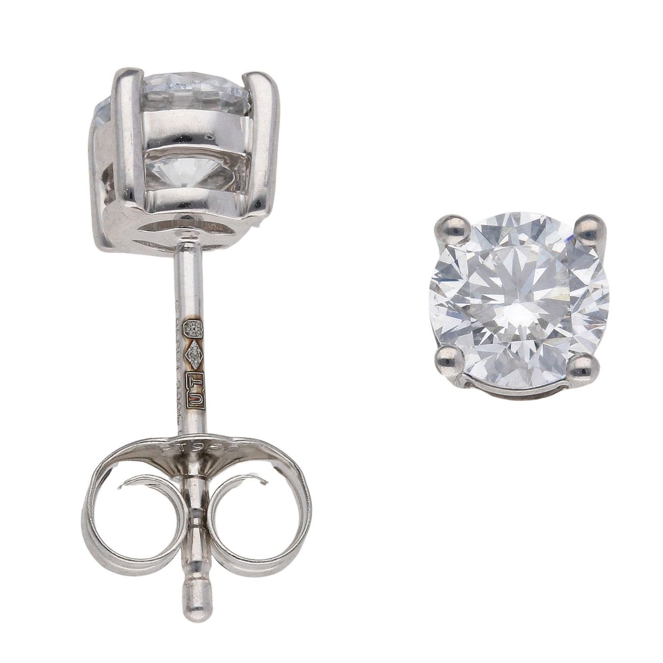 Lab Grown Platinum 1.00ct Brilliant Cut Diamond Solitaire Studs