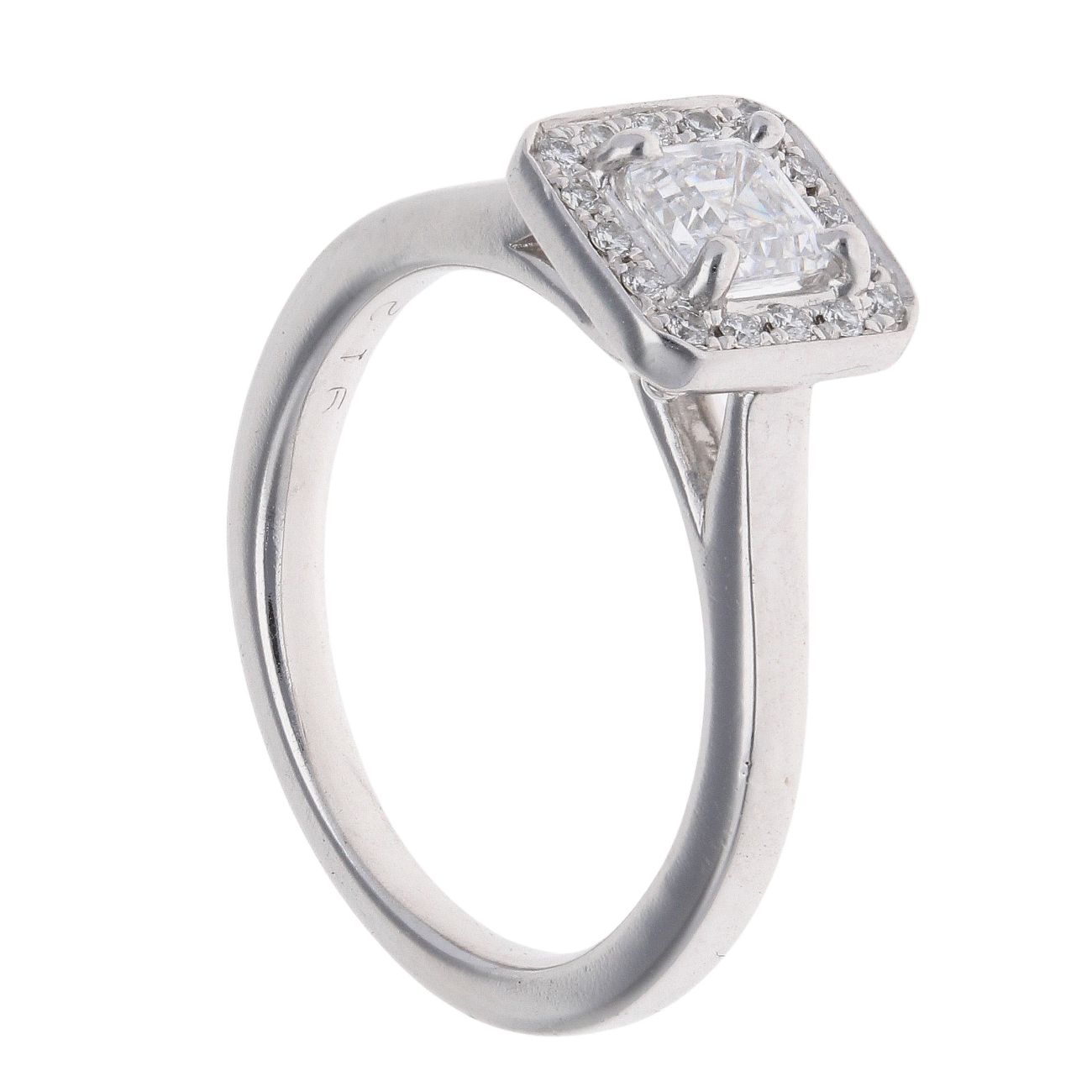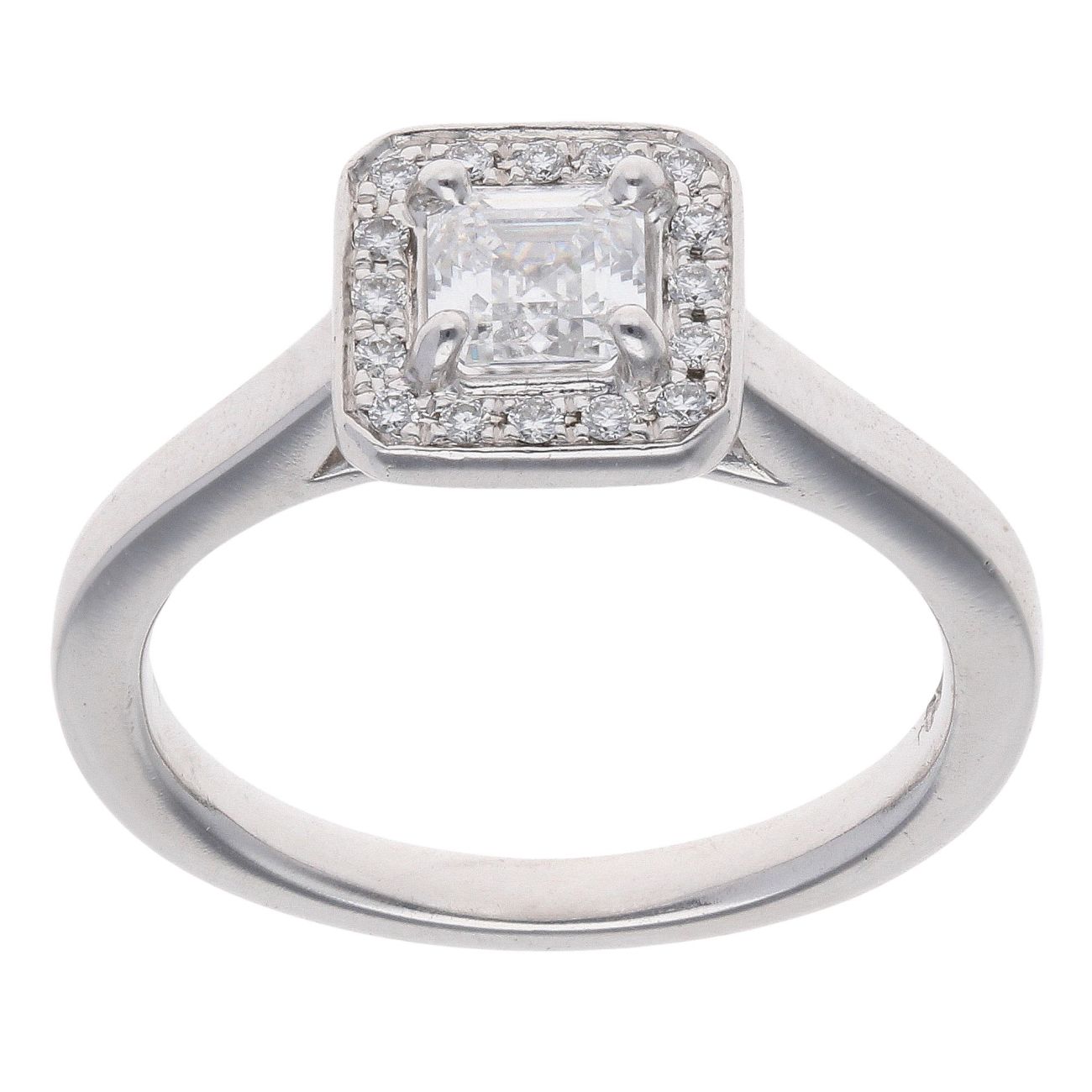 Platinum 0.50ct Square Emerald And Brilliant Cut Diamond Cluster Ring