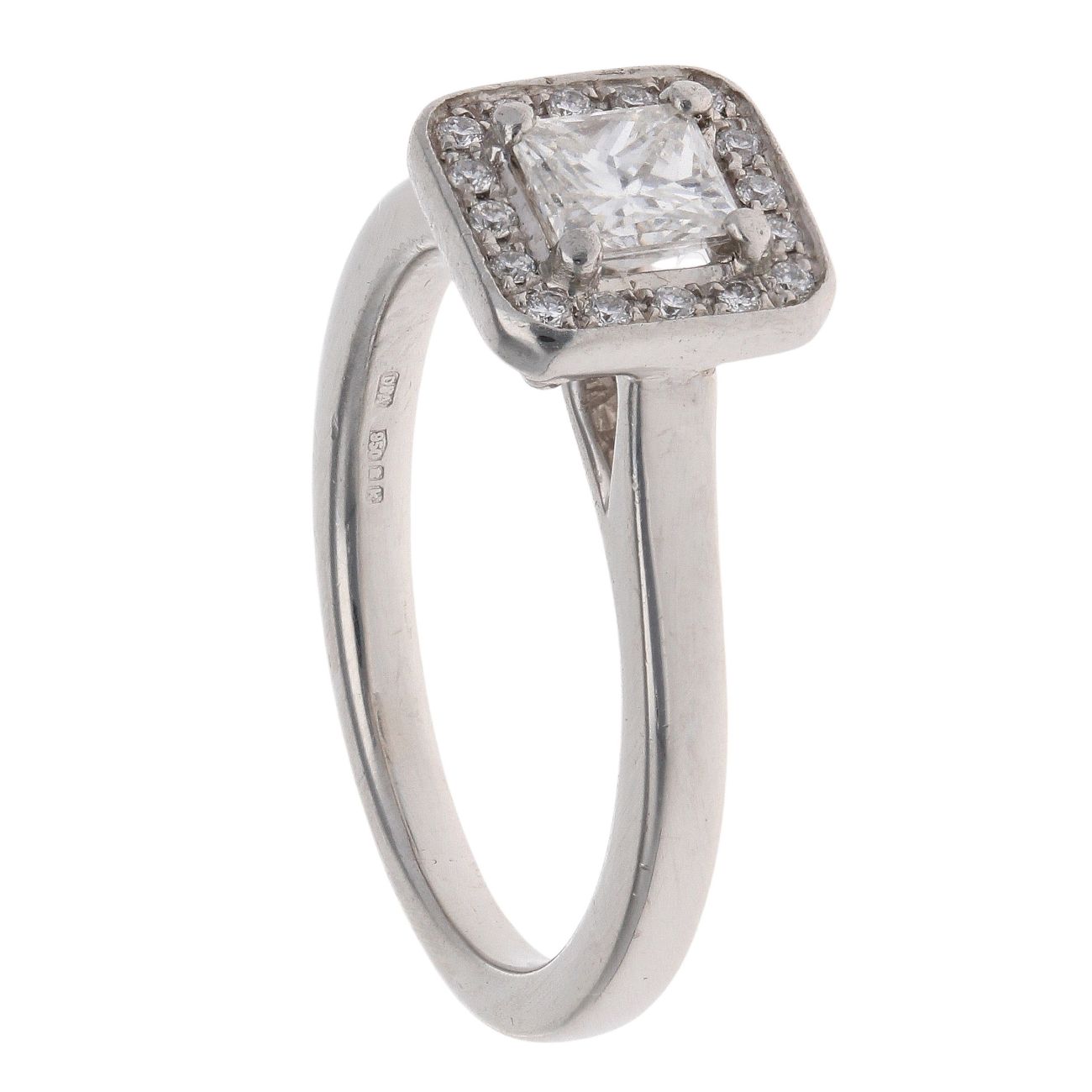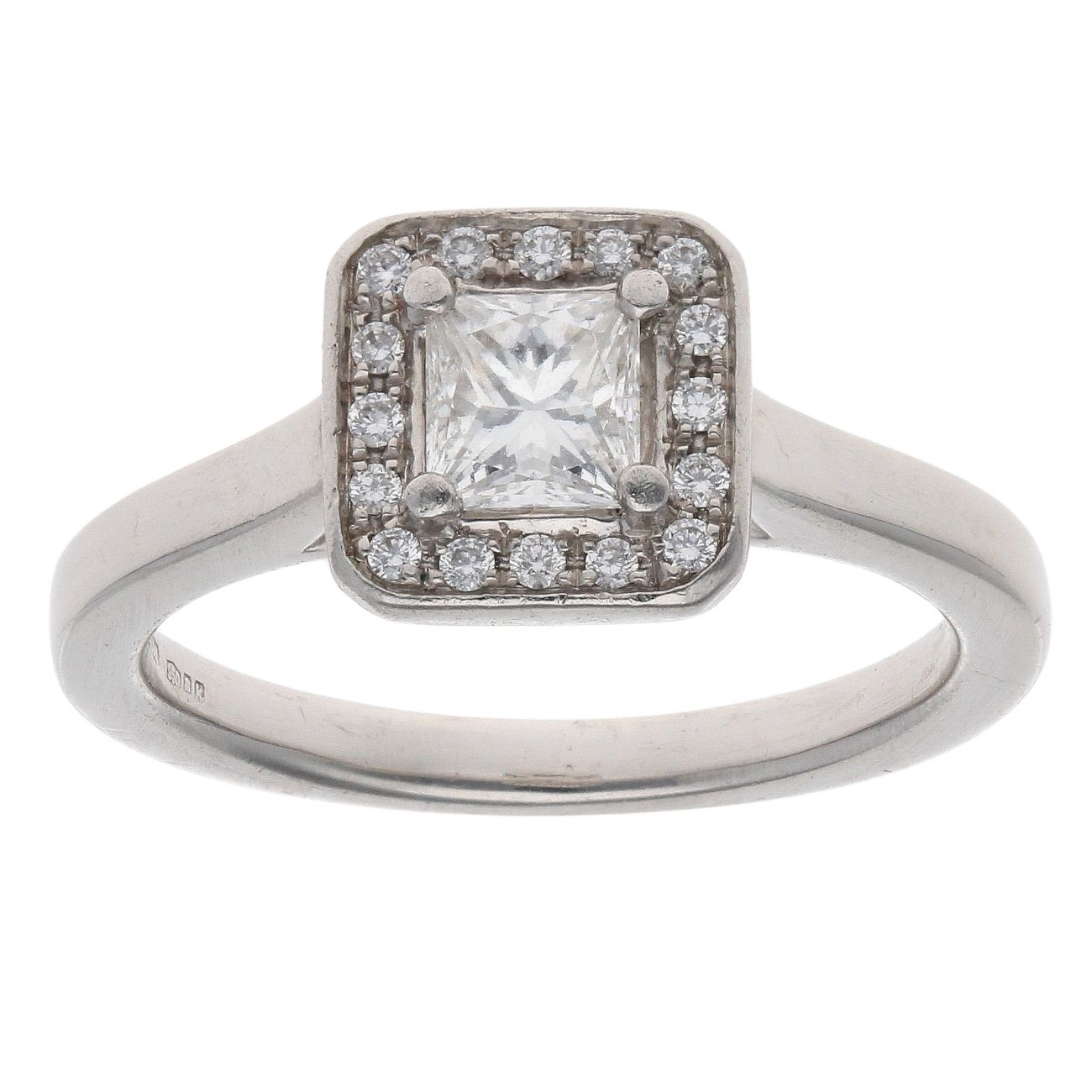 Platinum 0.60ct Princess And Brilliant Cut Diamond Cluster Ring
