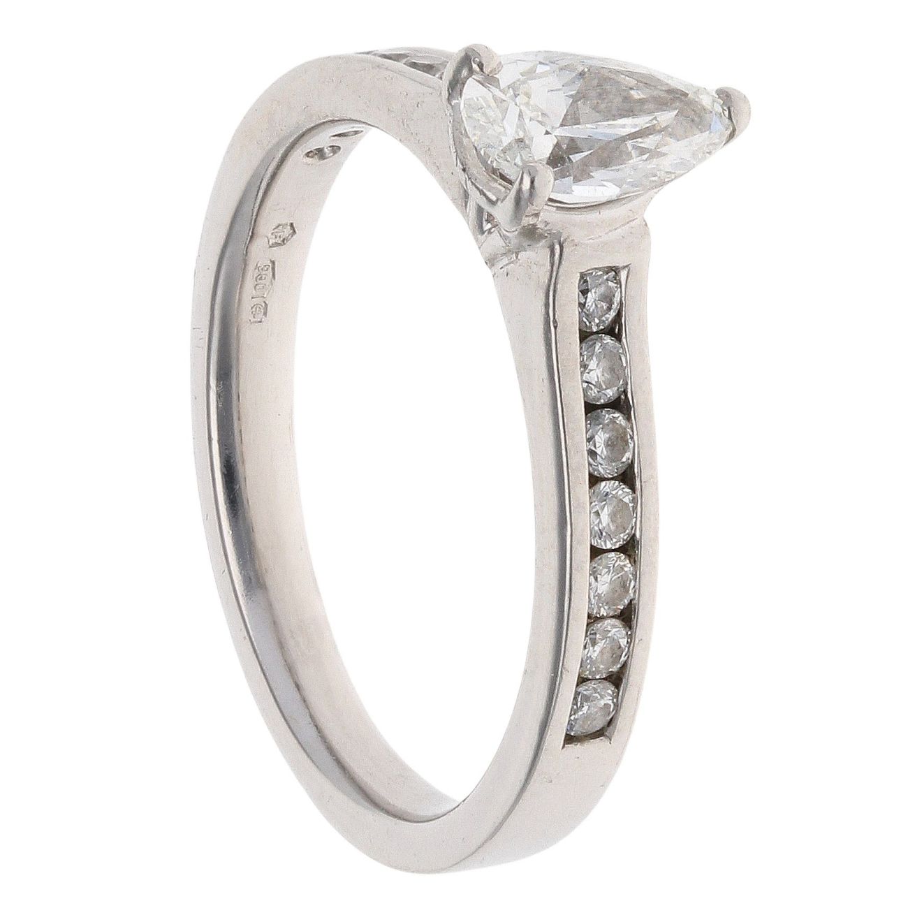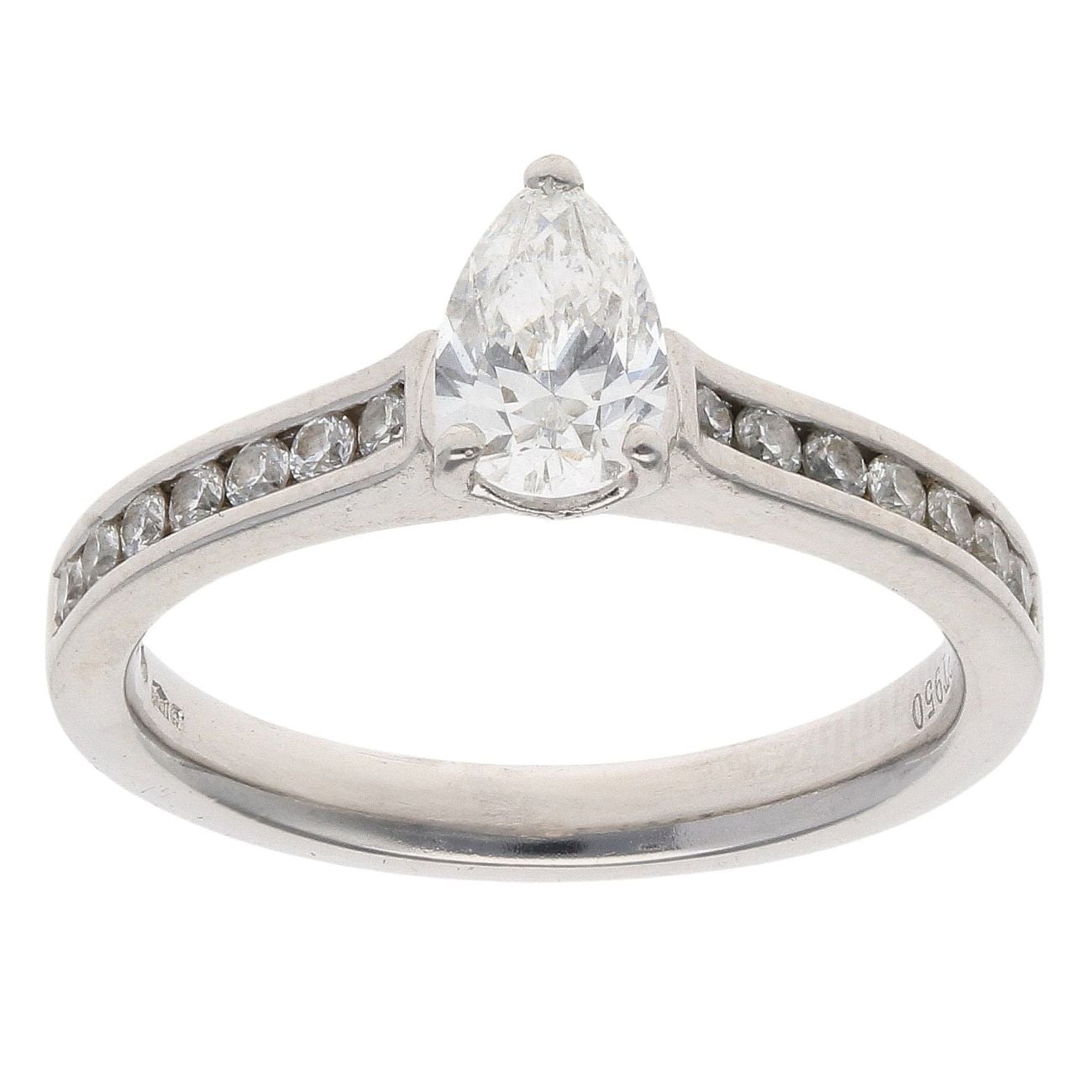 Platinum 0.70ct Pear And Brilliant Cut Diamond Solitaire Ring