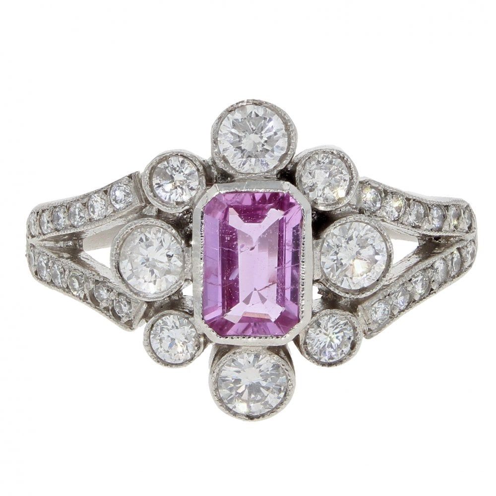 Platinum 0.80cts Diamond And Pink Sapphire Ring