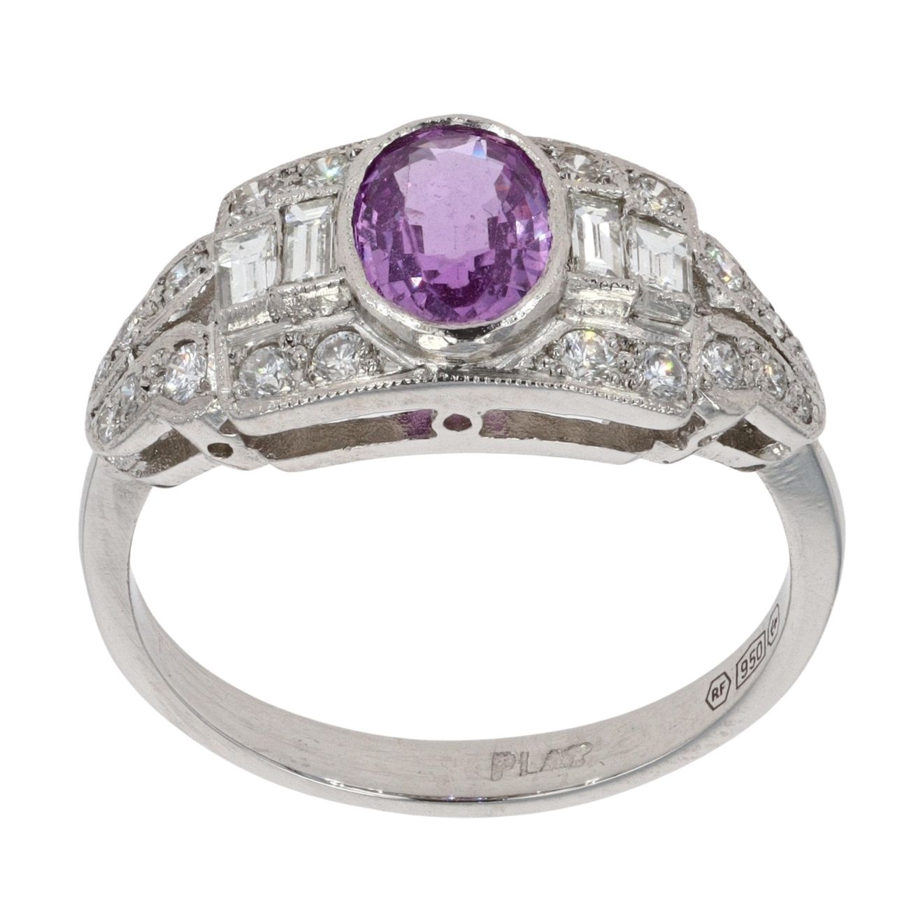 Platinum 1.15ct Pink Sapphire and 0.55ct Diamond Vintage Inspired Ring