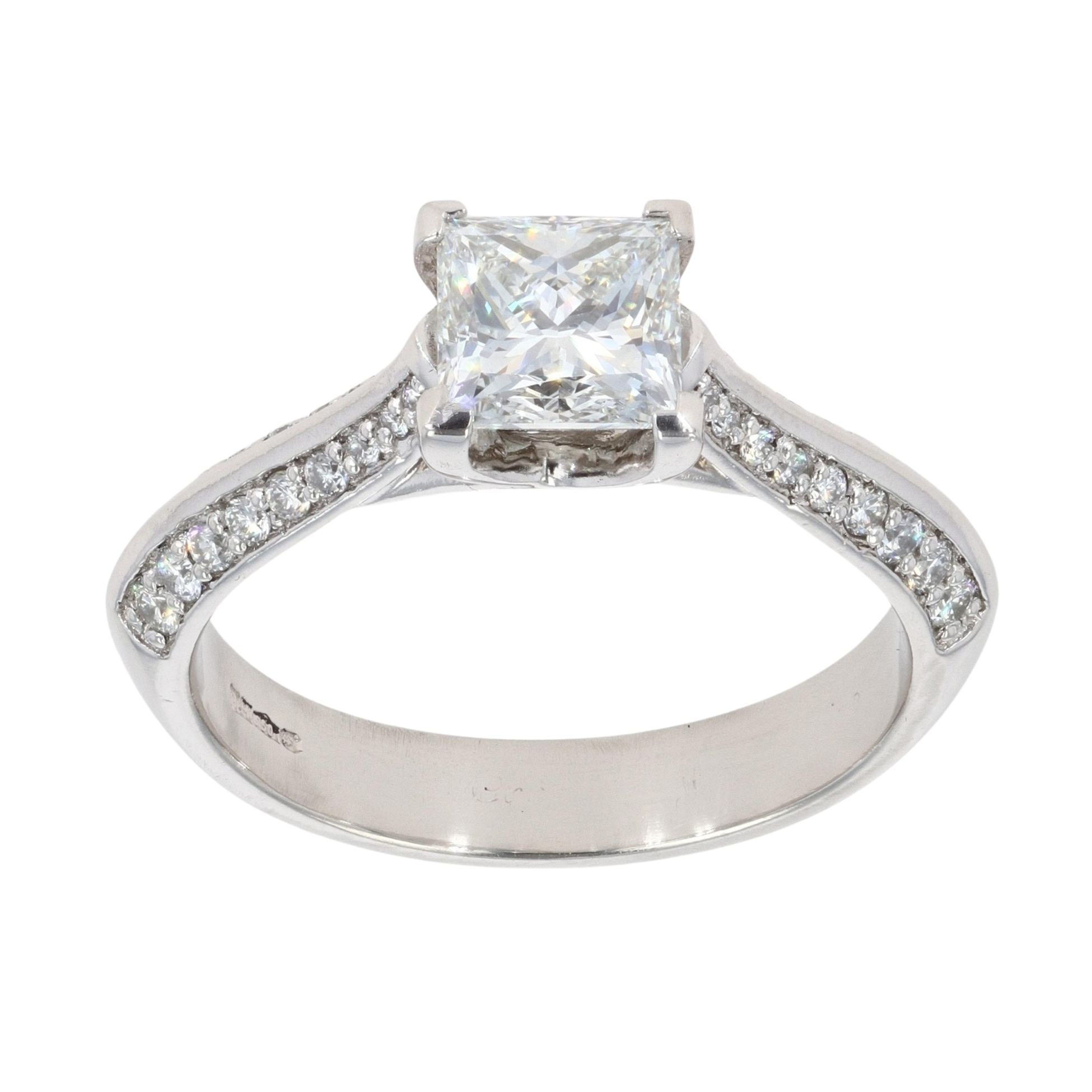 Platinum 1.20ct Princess And Brilliant Cut Diamond Solitaire Ring