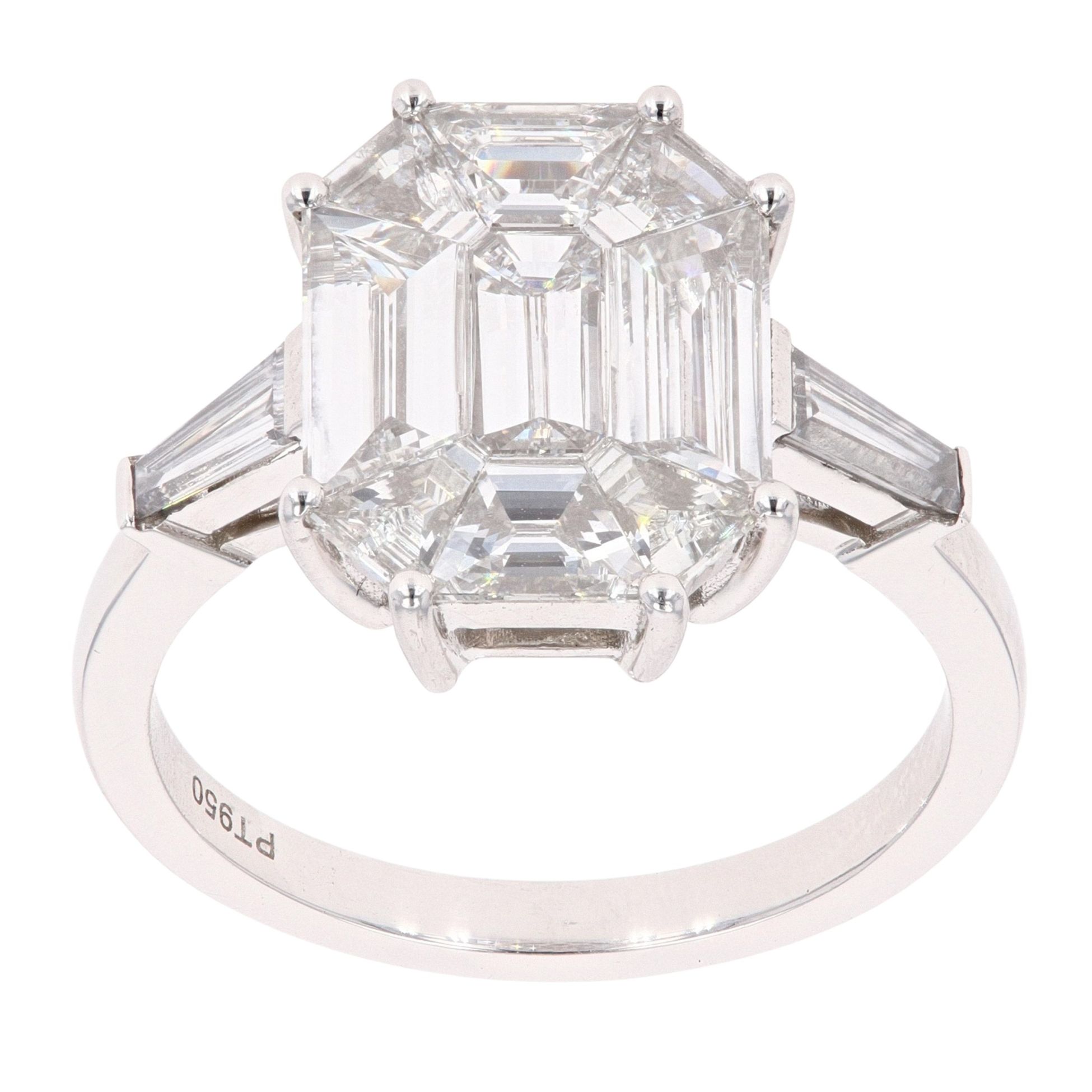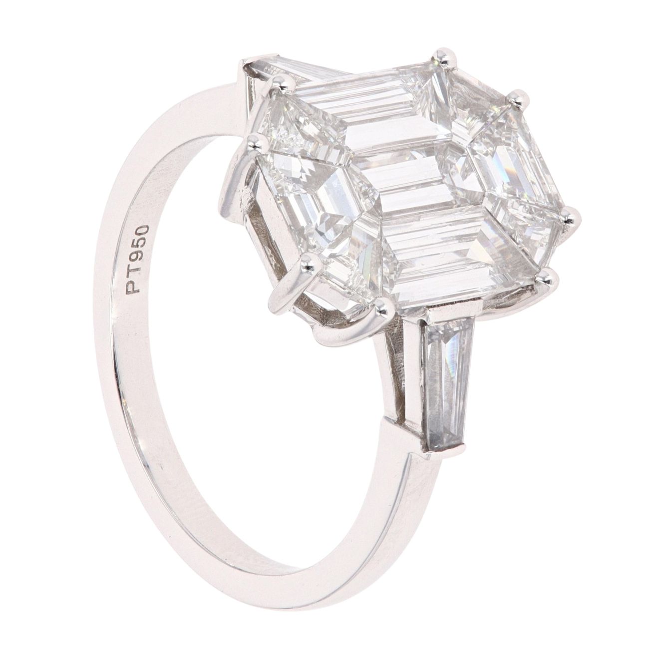 Platinum 2.59ct Pie Baguette Cut Fancy Diamond Ring