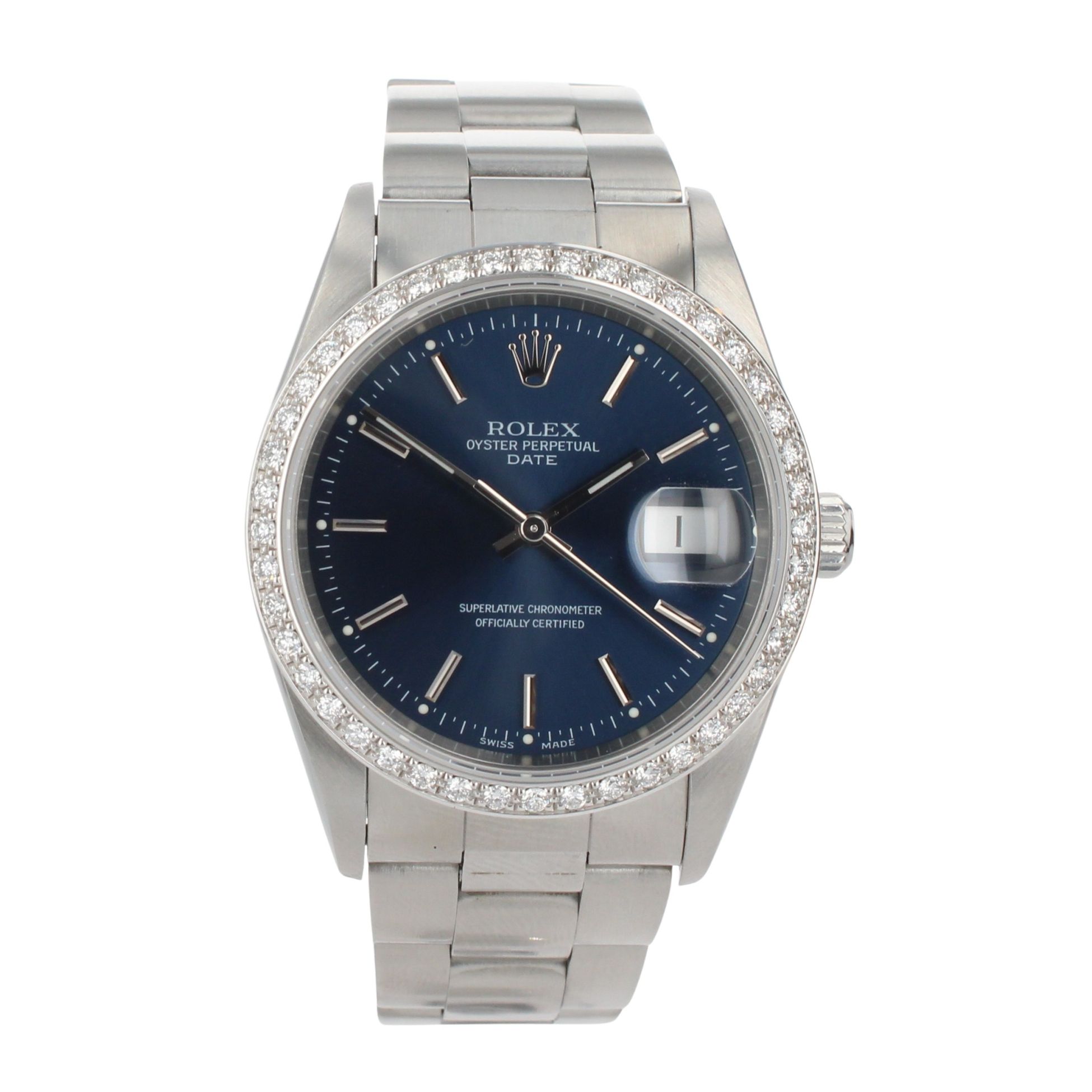 Rolex Custom Oyster Perpetual Date Pre Owned Watch Ref 15210