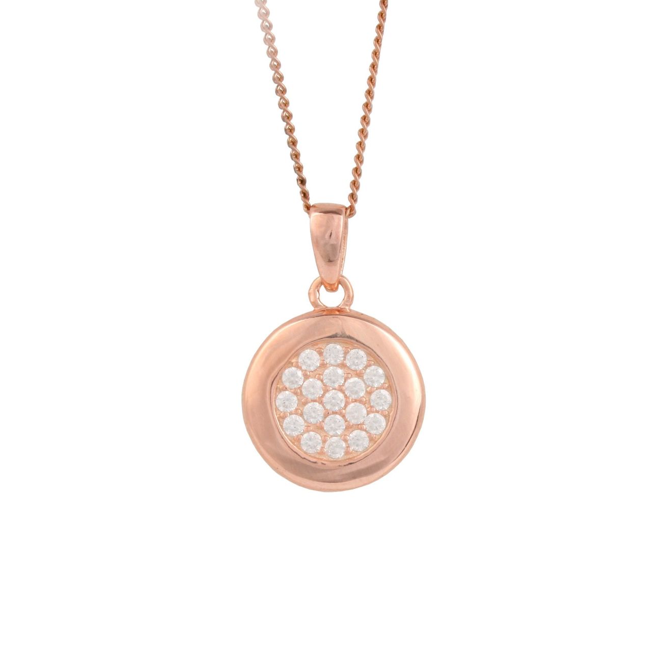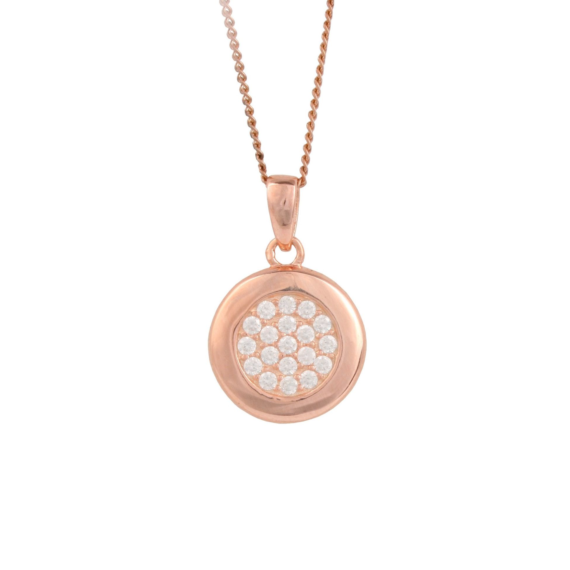 Rose Gold Plated Sterling Silver Cubic Zirconia Disc Pendant
