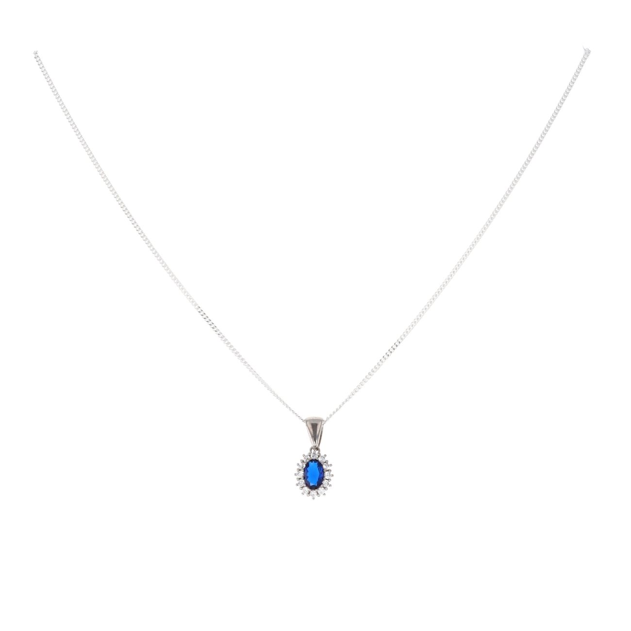 Silver Blue Gemstone And Cubic Zirconia Cluster Pendant And Chain 16" By Icesia