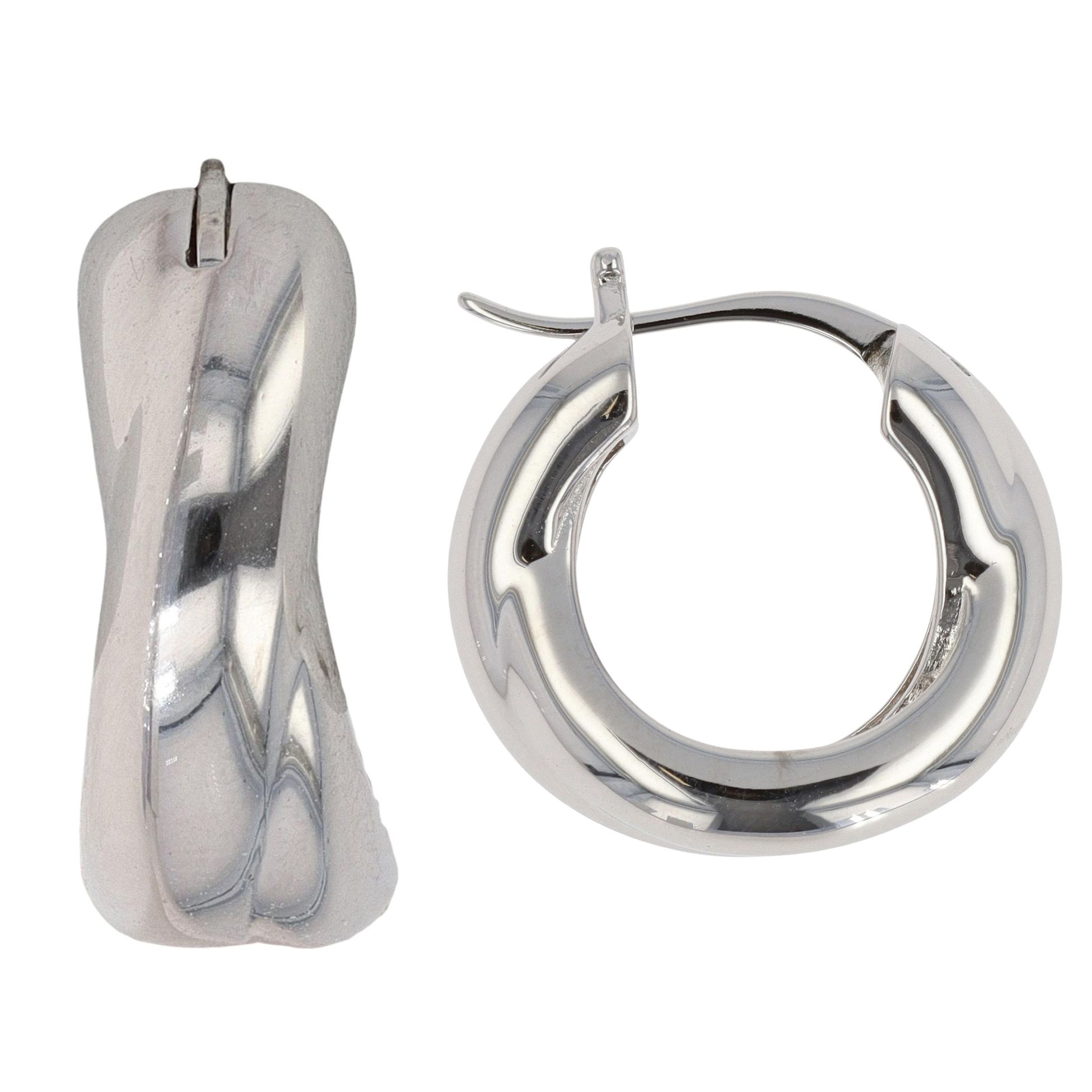 Silver Chunky Crossover Hoop Earrings by Icesia