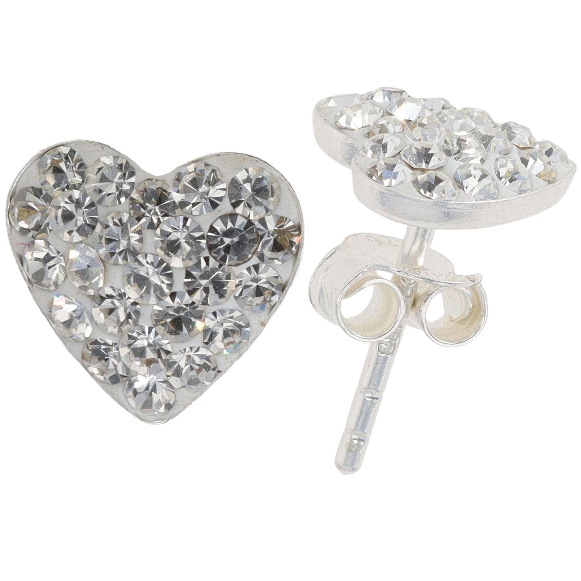 Silver Crystal Heart Stud Earrings By Icesia