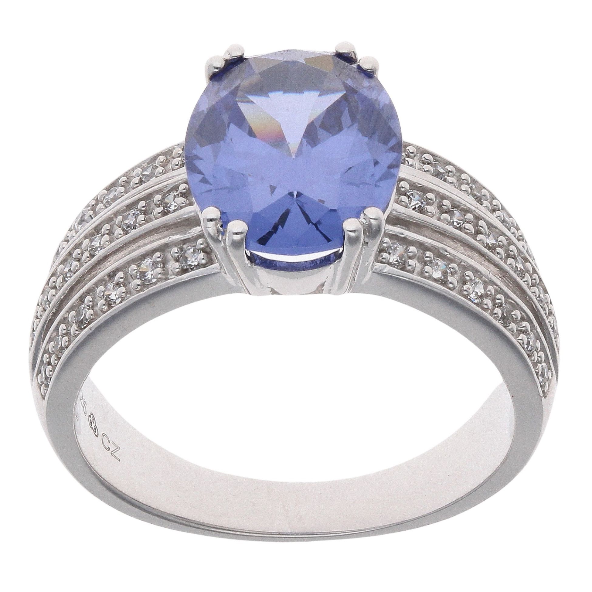 Silver Cubic Zirconia and Blue Gemstone Solitaire Ring by Icesia