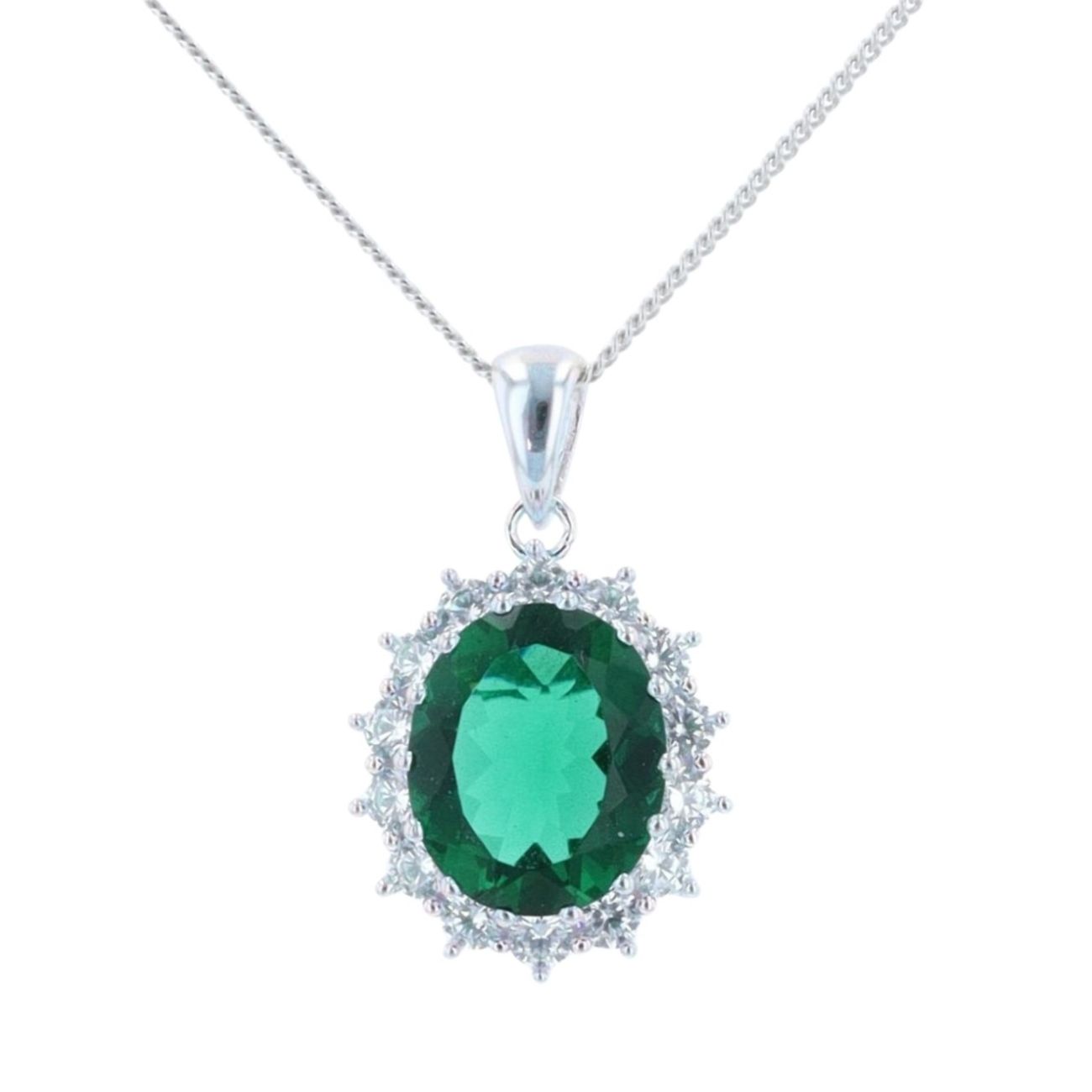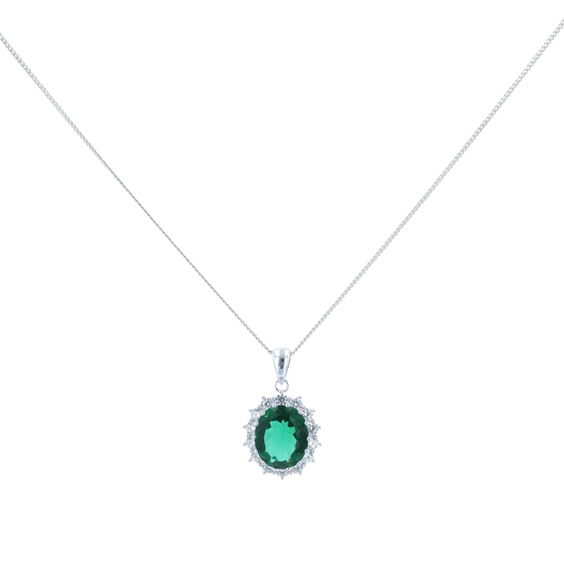 Silver Cubic Zirconia and Green Gem Pendant and Chain by Icesia 18"