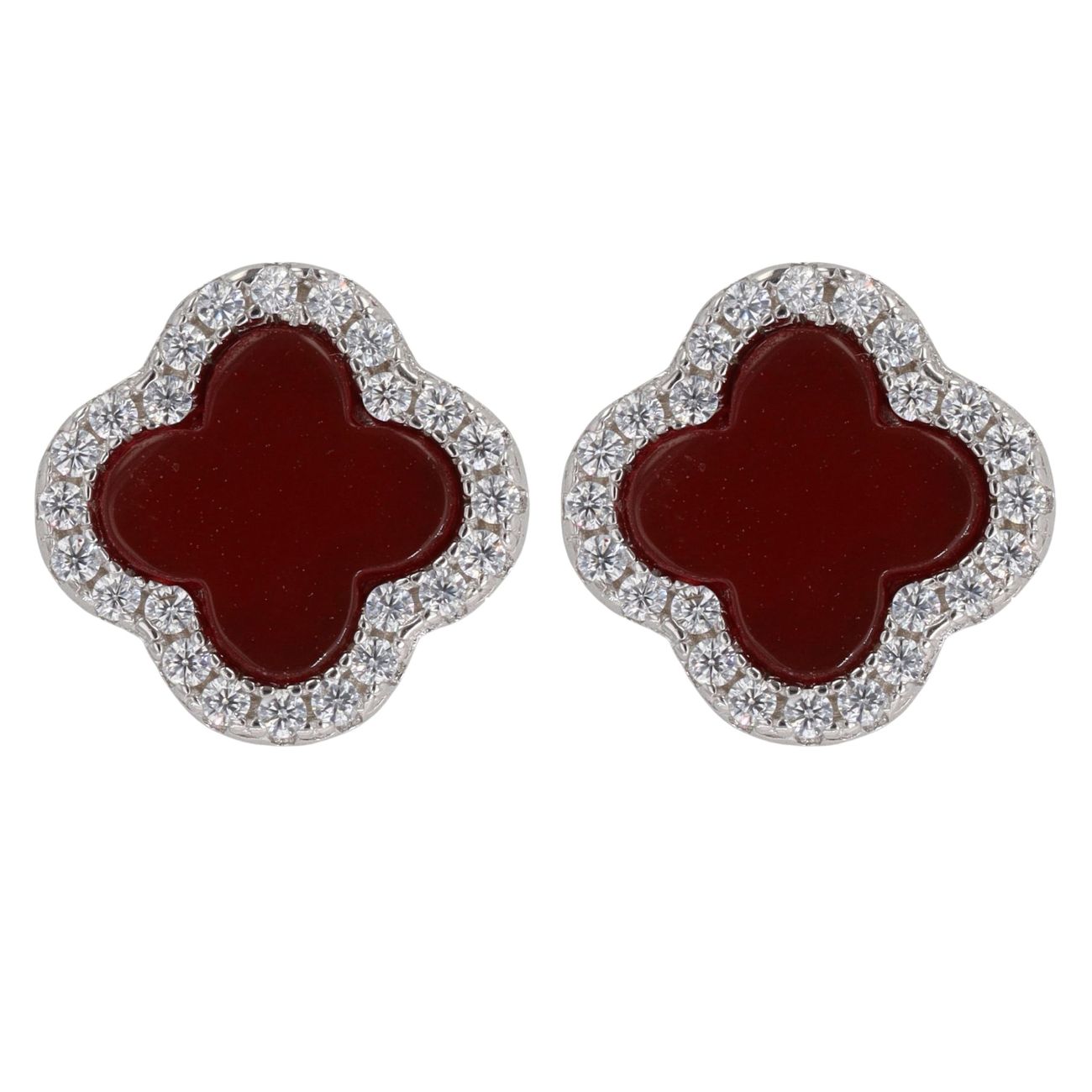 Silver Cubic Zirconia And Red Agate Floral Stud Earrings By Icesia