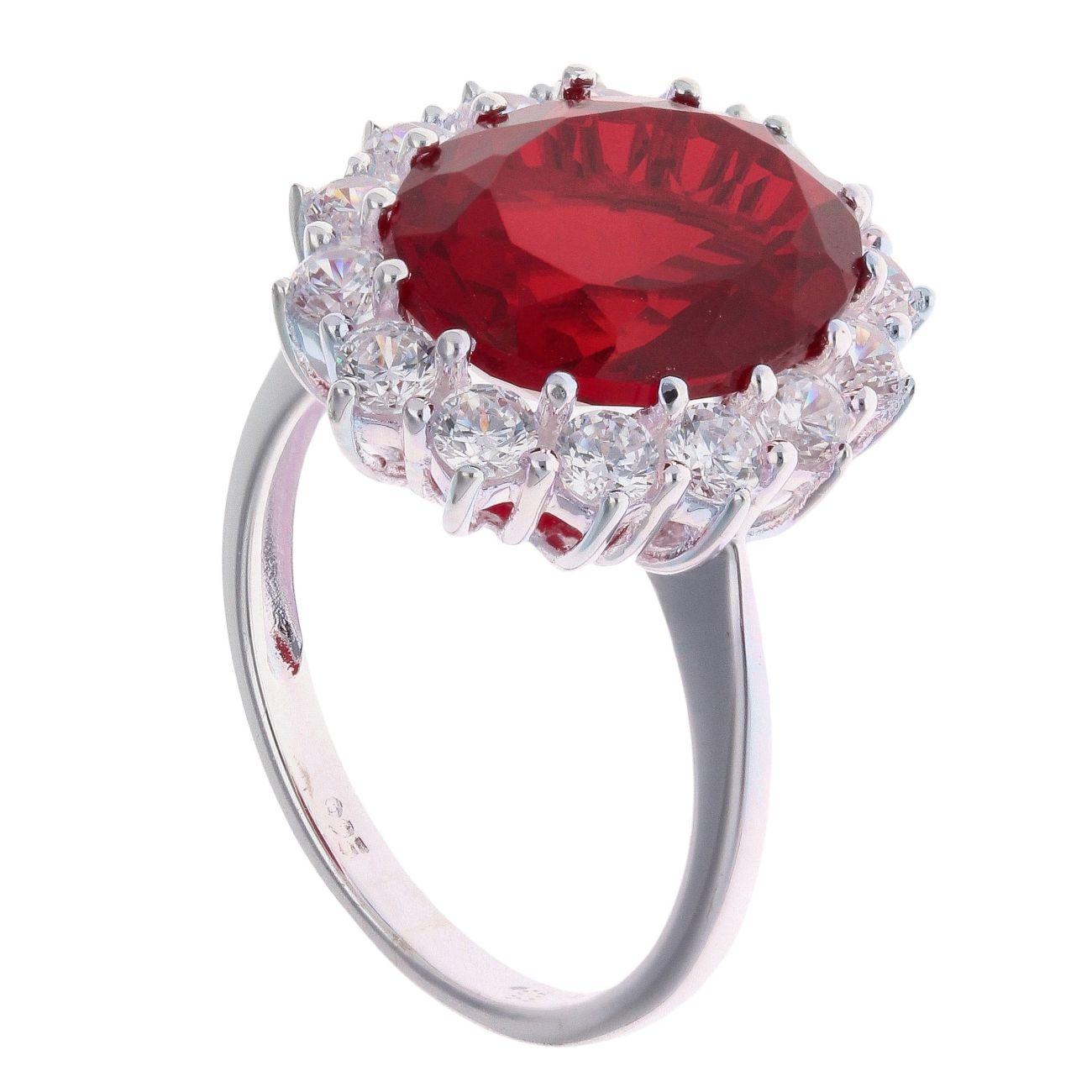 Silver Cubic Zirconia and Red Gemstone Cluster Ring by Icesia