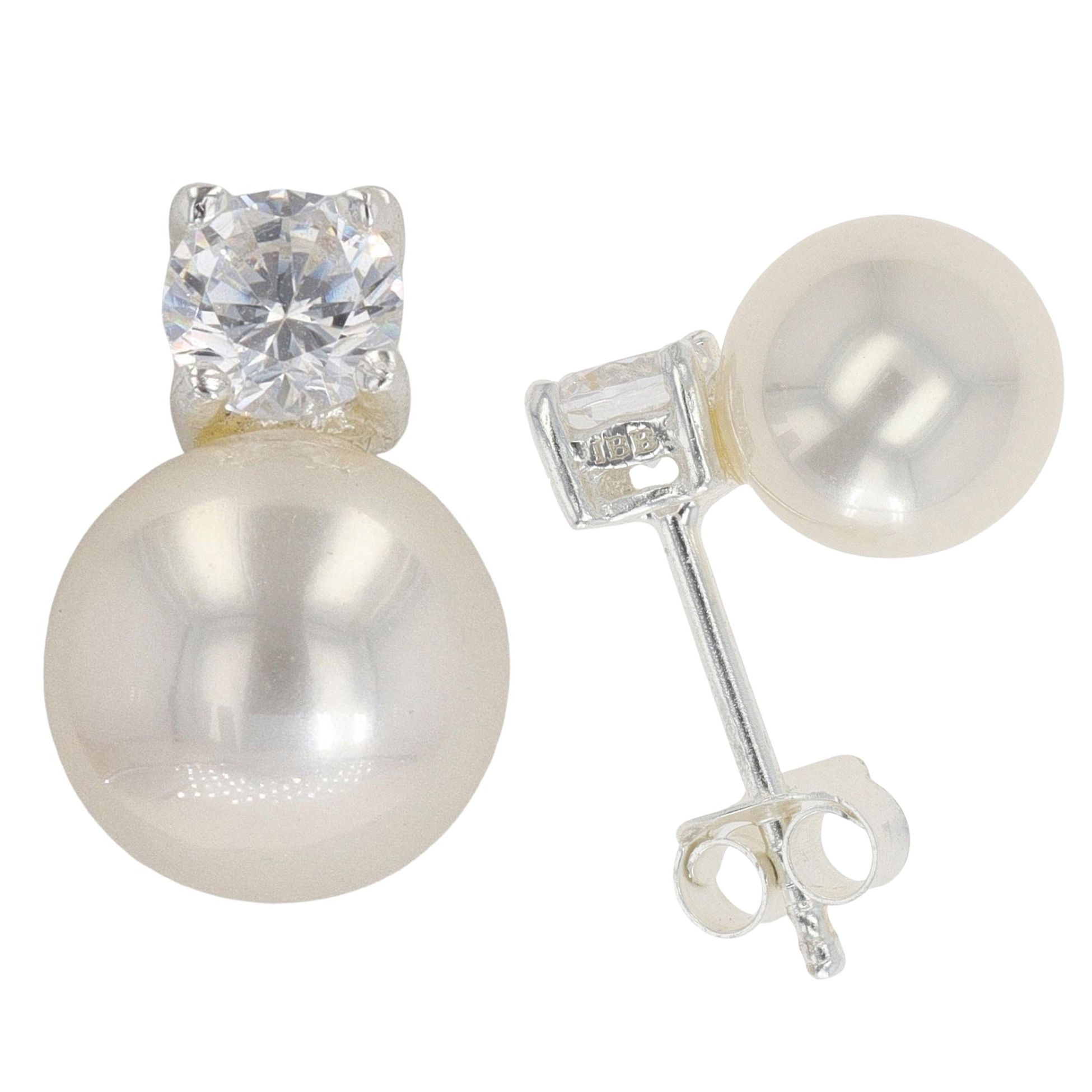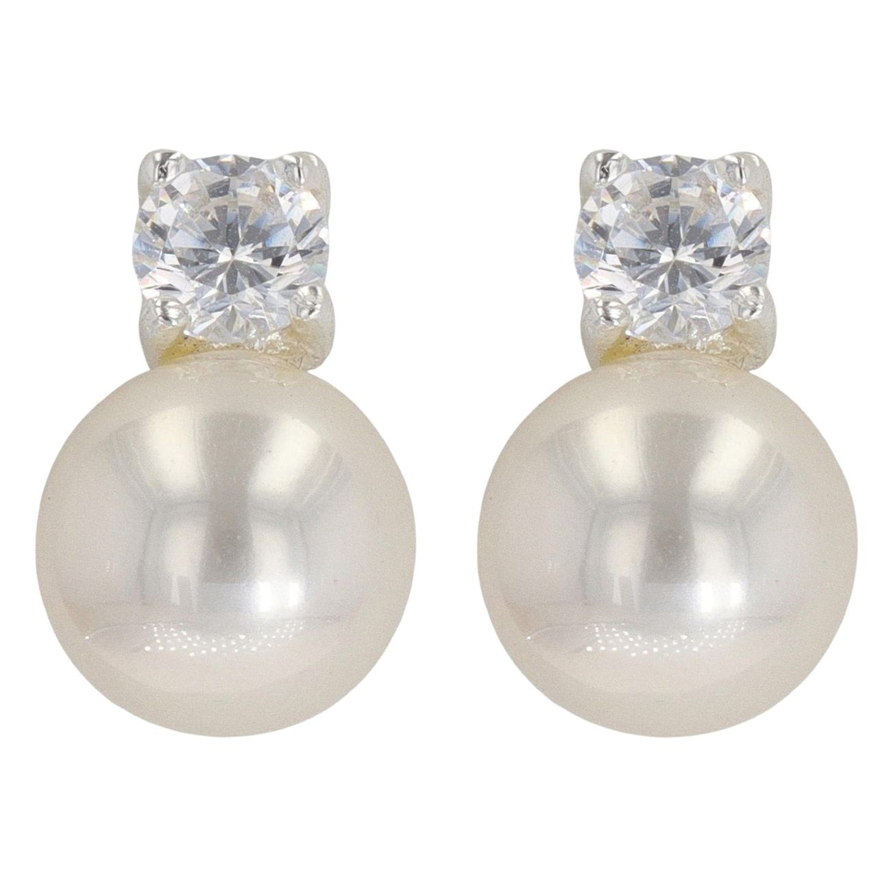 Silver Cubic Zirconia And Synthetic Pearl Stud Earrings By Icesia