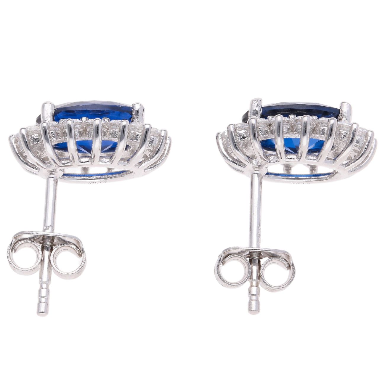 Silver Cubic Zirconia Blue Cluster Earrings by Icesia