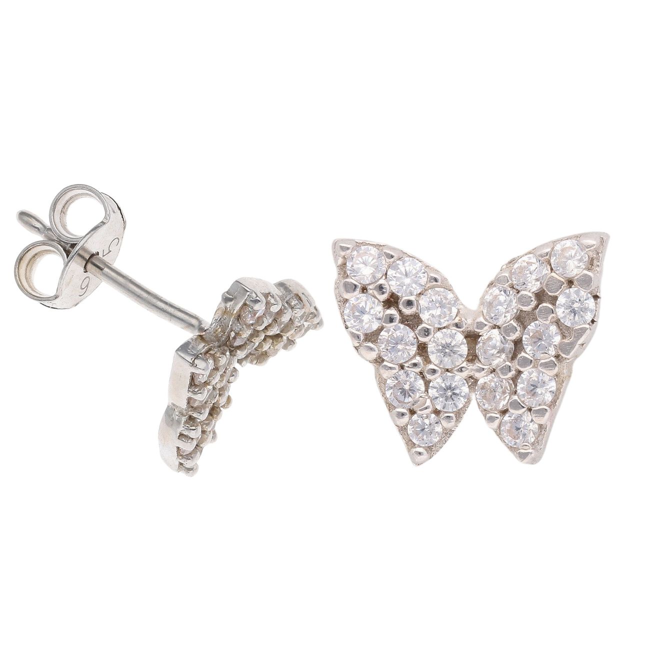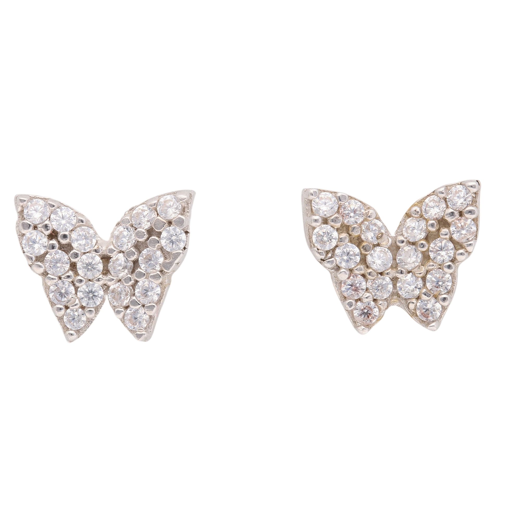 Silver Cubic Zirconia Butterfly Stud Earrings by Icesia