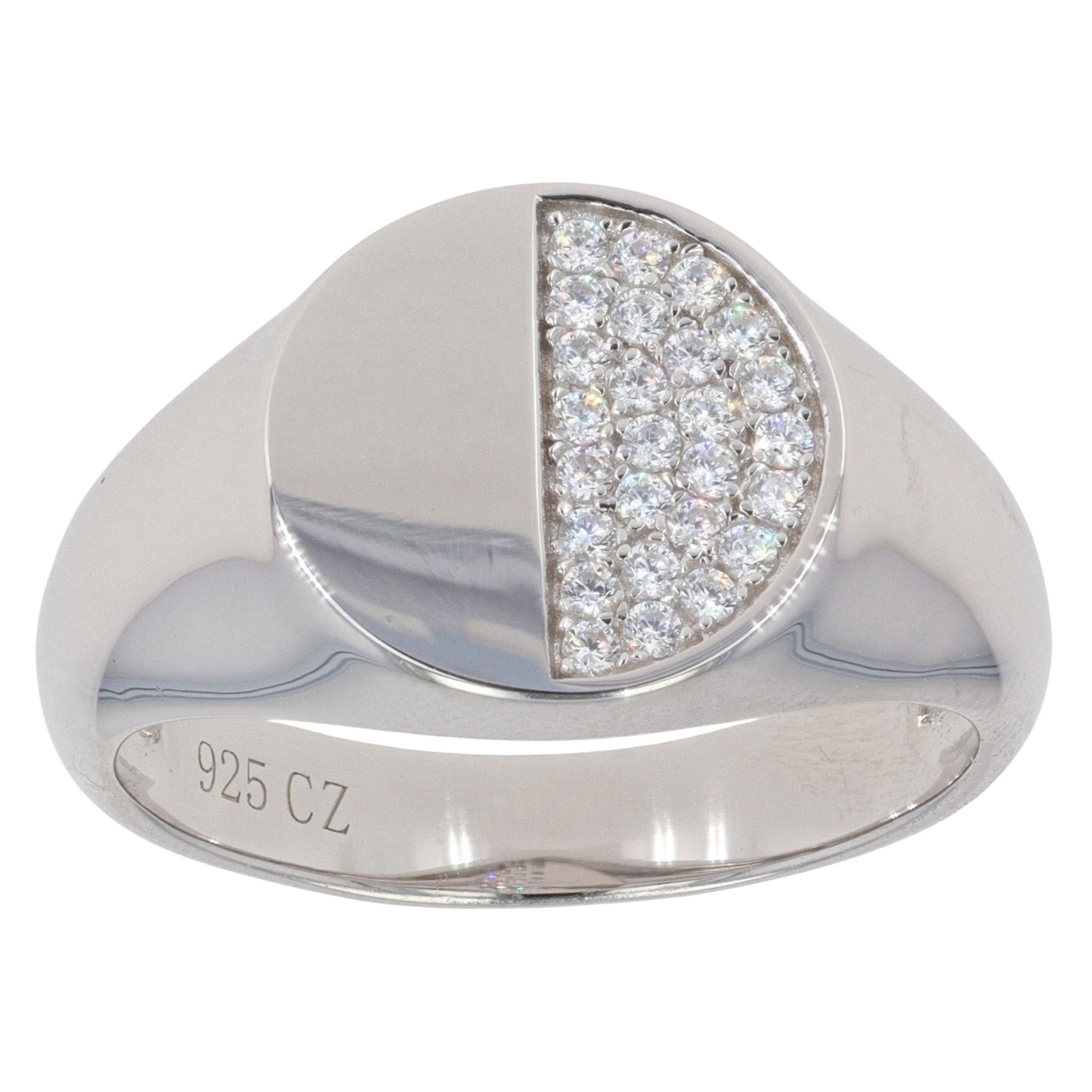 Silver Cubic Zirconia Circular Signet Ring By Icesia