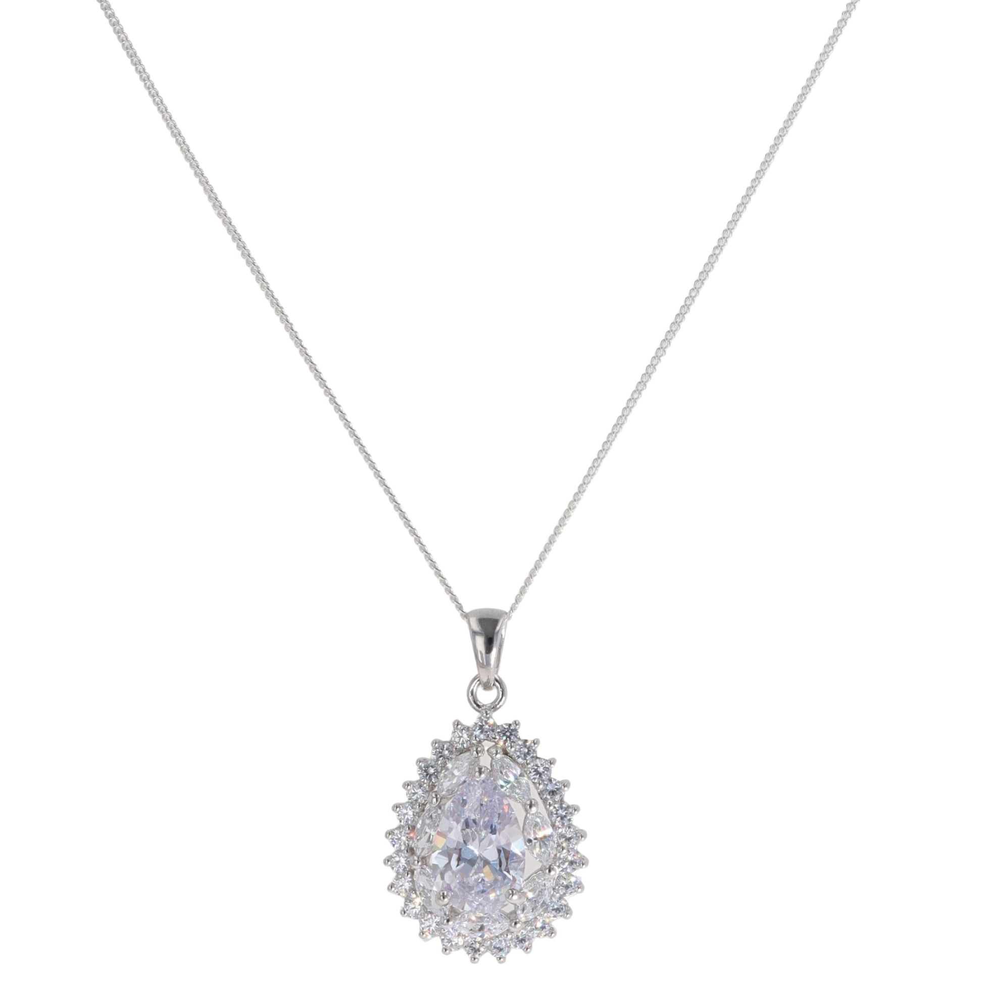 Silver Cubic Zirconia Cluster Pendant And Chain 18" By Icesia