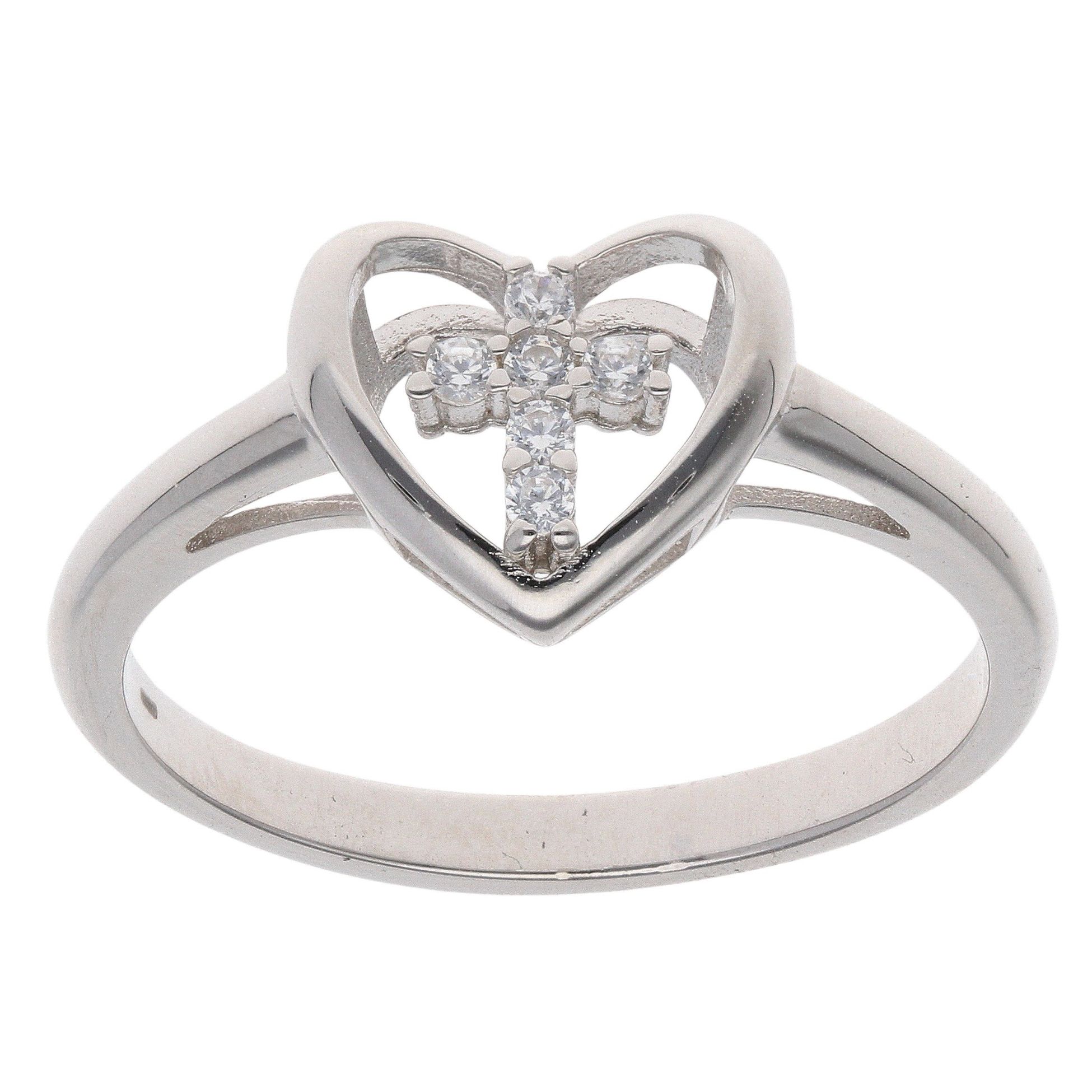 Silver Cubic Zirconia Cross And Heart Ring By Icesia