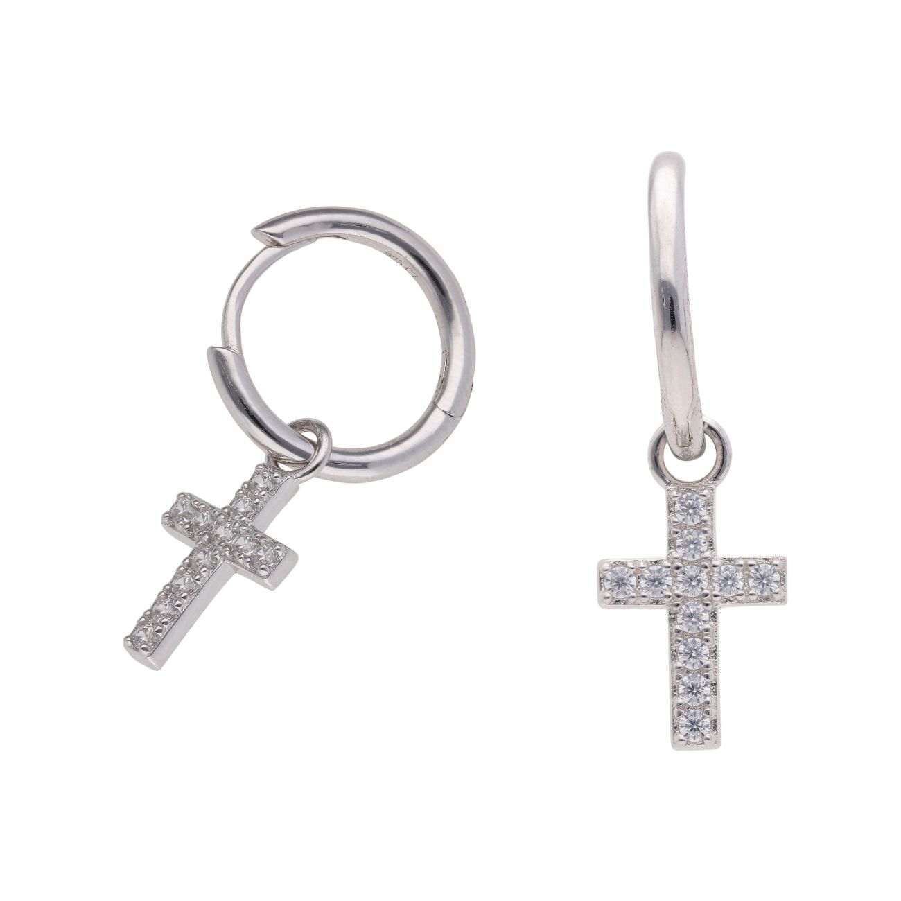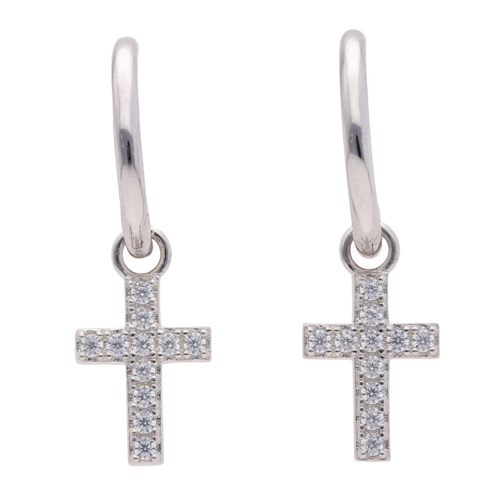 Silver Cubic Zirconia Cross Hoop Earrings by Icesia
