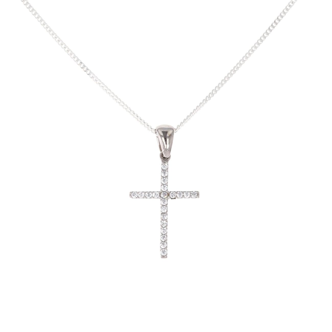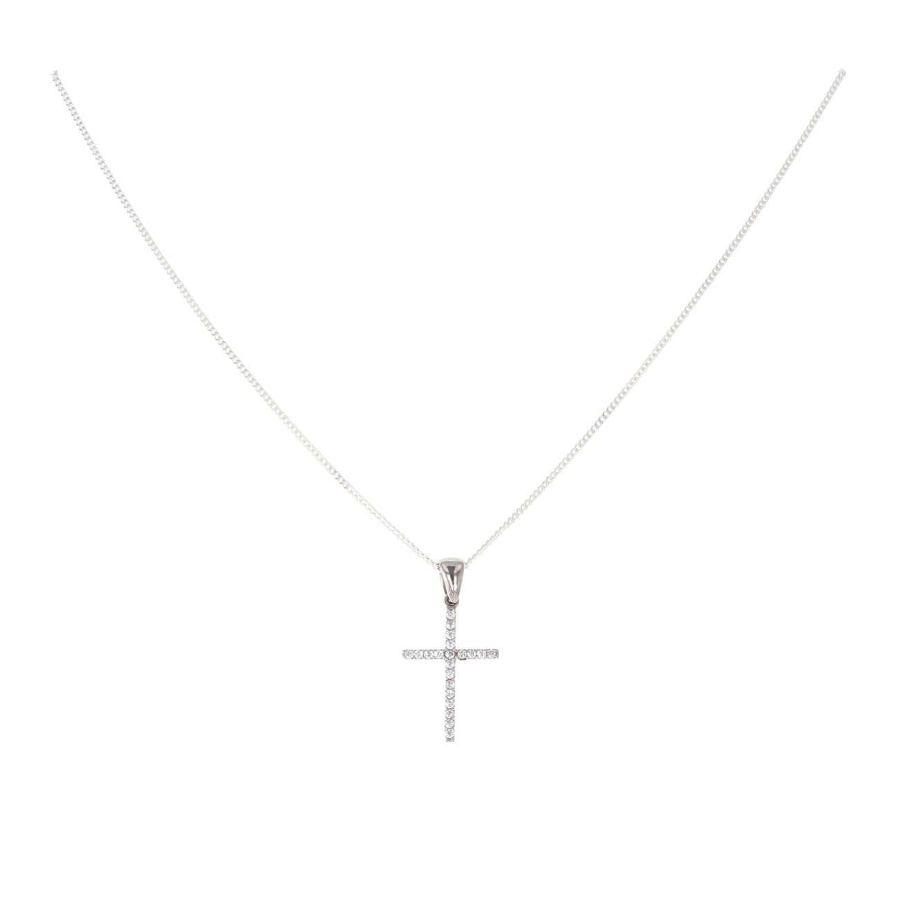Silver Cubic Zirconia Cross Pendant And Chain 18" By Icesia