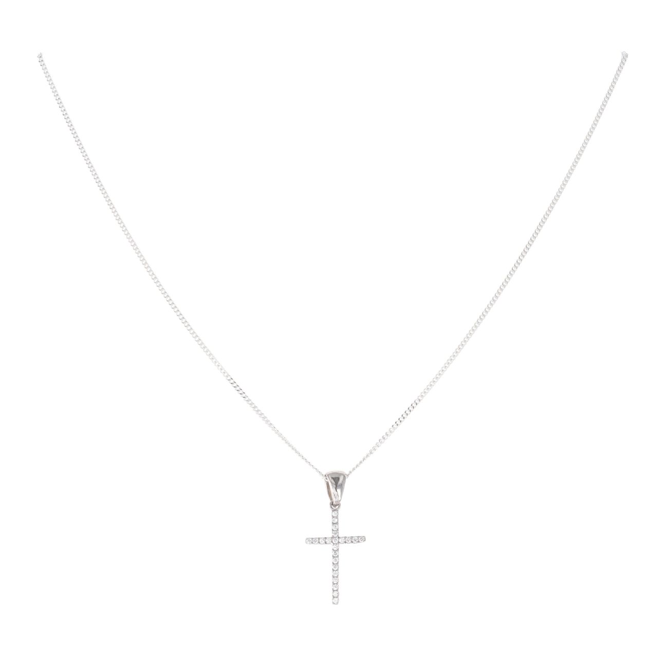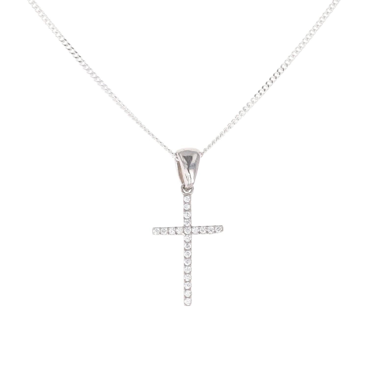 Silver Cubic Zirconia Cross Pendant And Chain 18" By Icesia