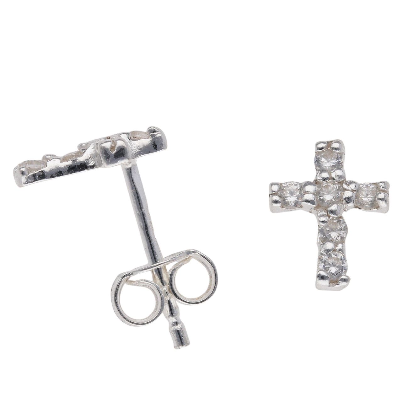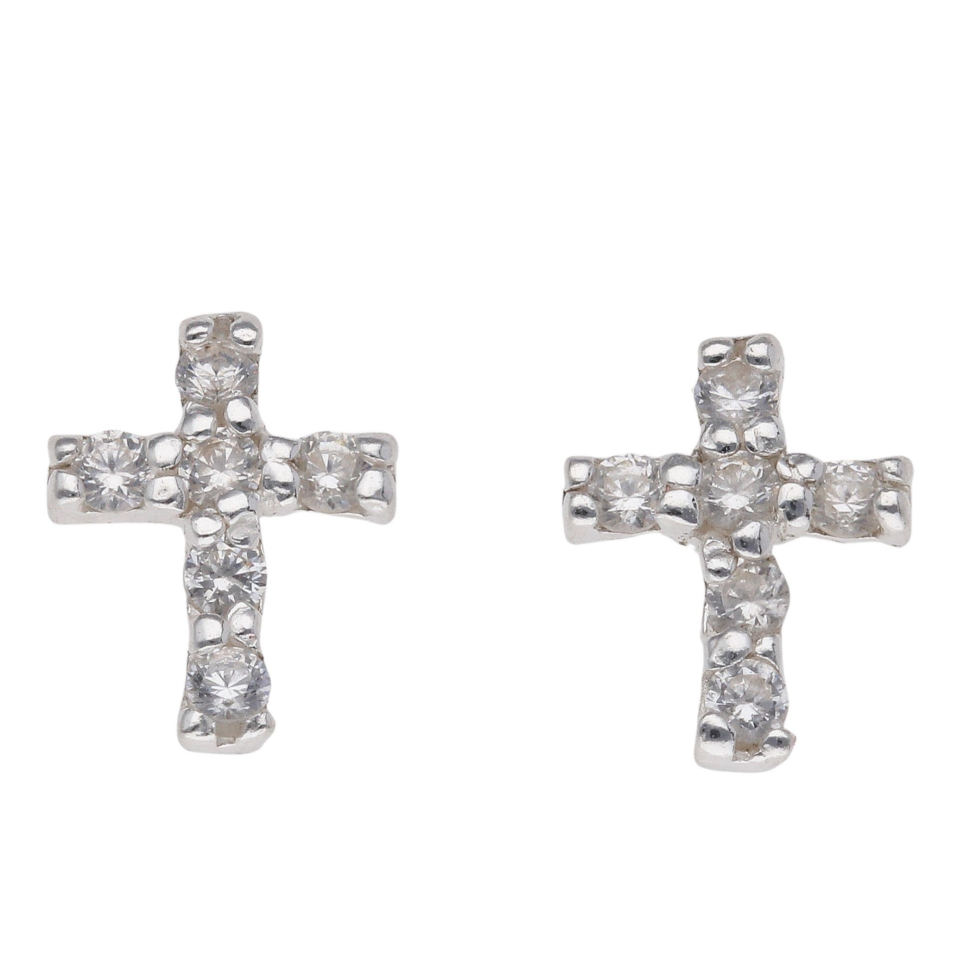 Silver Cubic Zirconia Cross Stud Earrings by Icesia