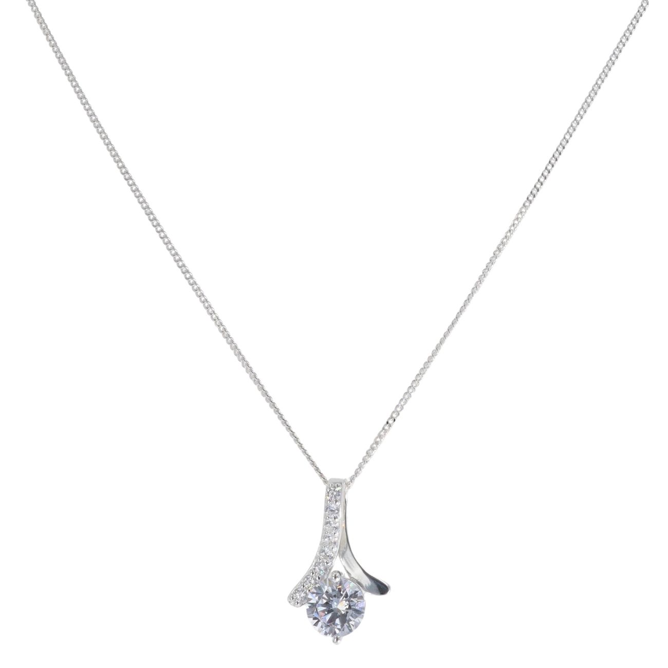 Silver Cubic Zirconia Crossover Pendant And Chain 18" By Icesia