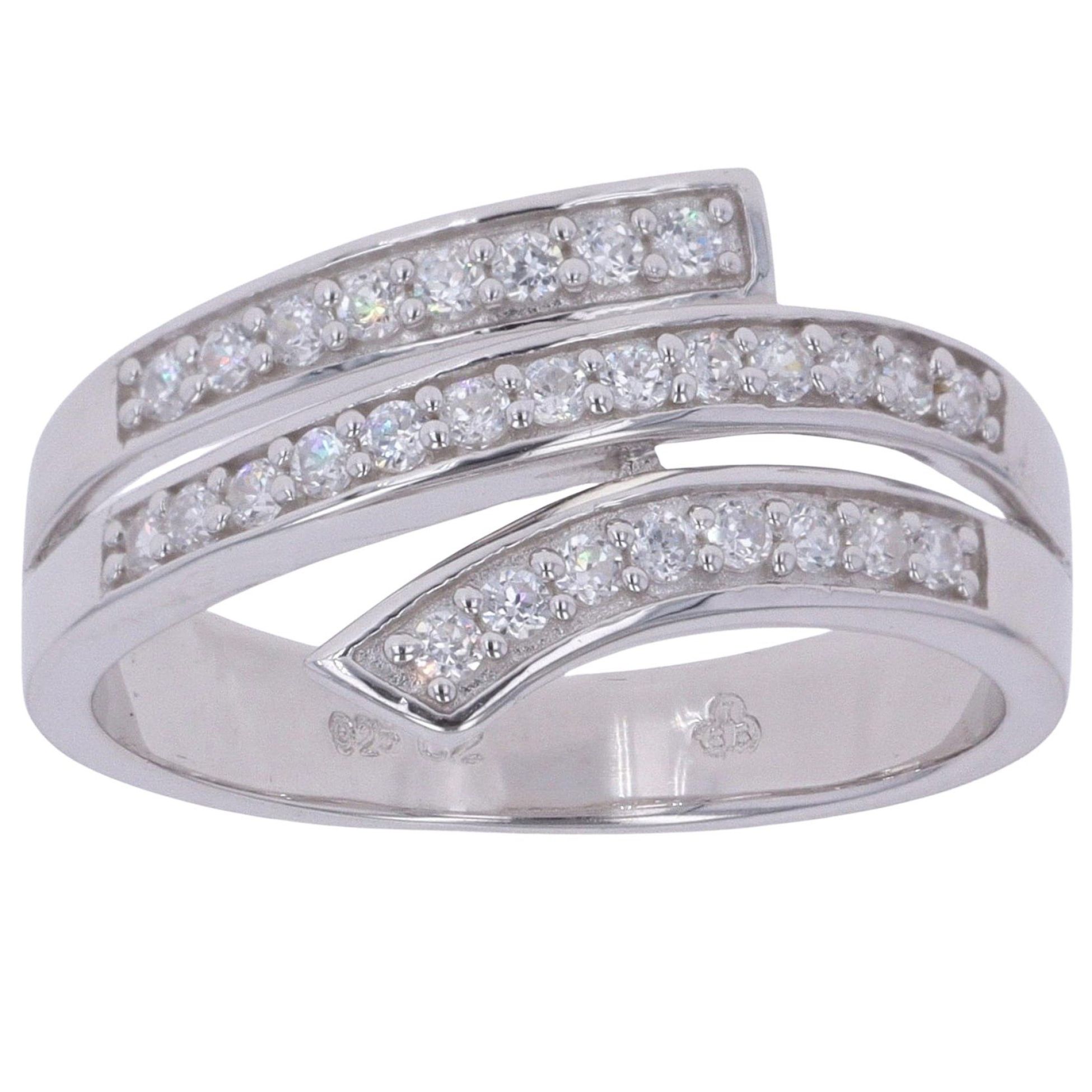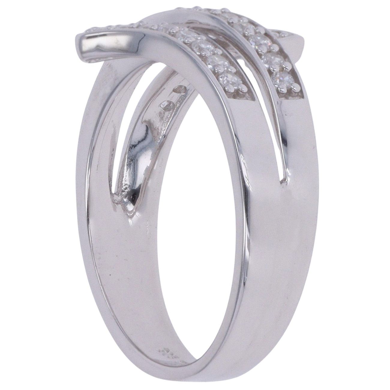 Silver Cubic Zirconia Crossover Ring By Icesia