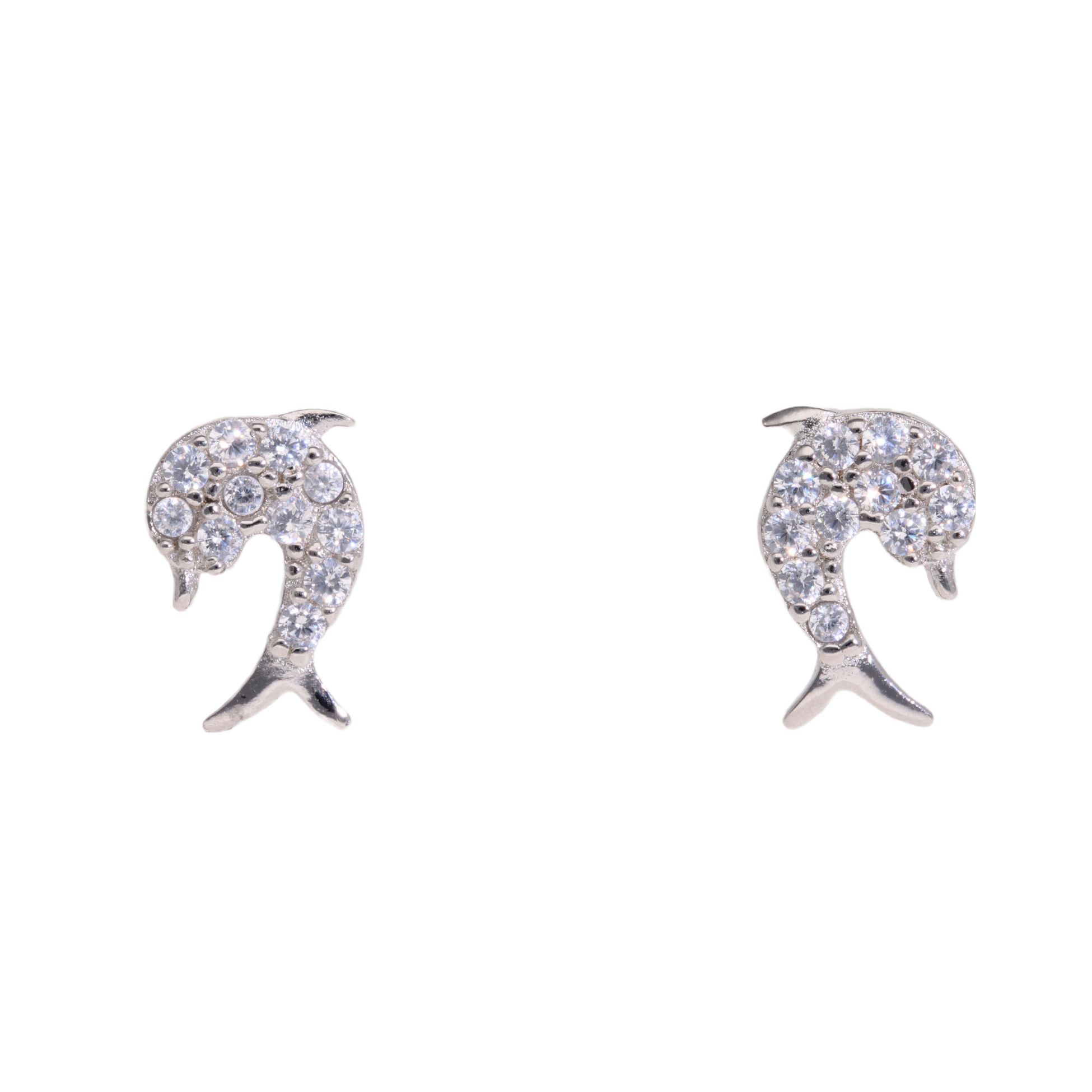 Silver Cubic Zirconia Dolphin Stud Earrings by Icesia