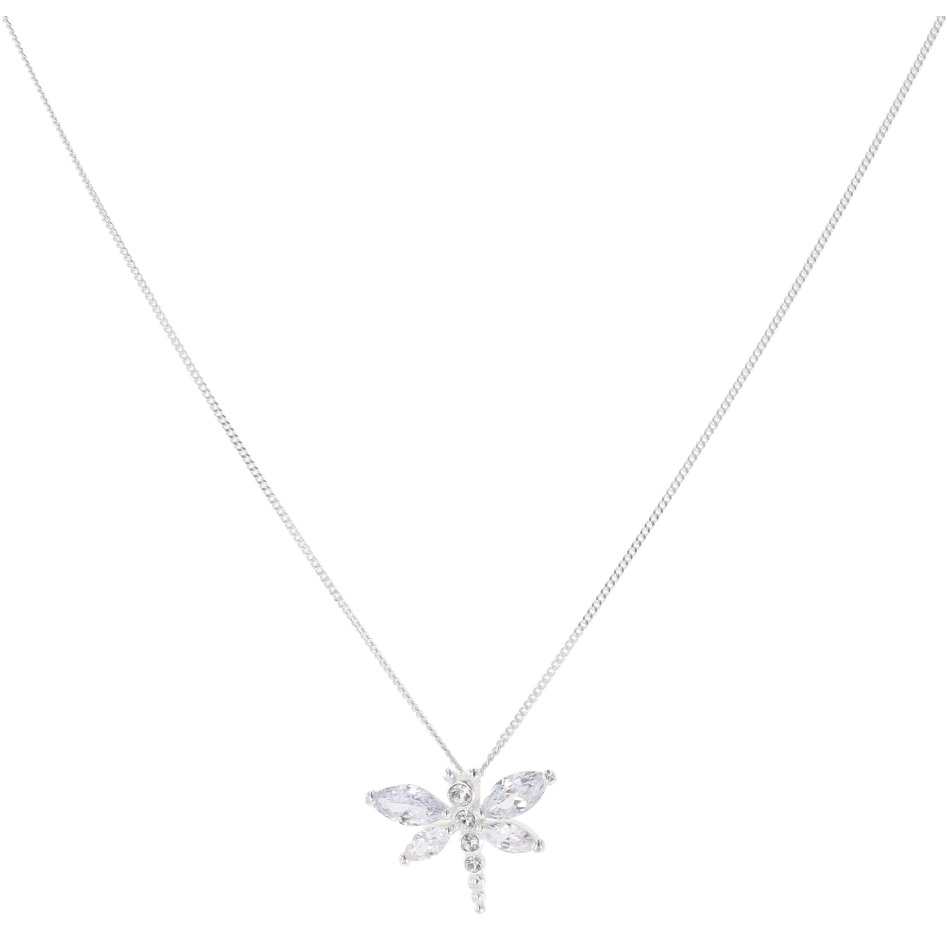 Silver Cubic Zirconia Dragonfly Pendant And Chain 18" By Icesia