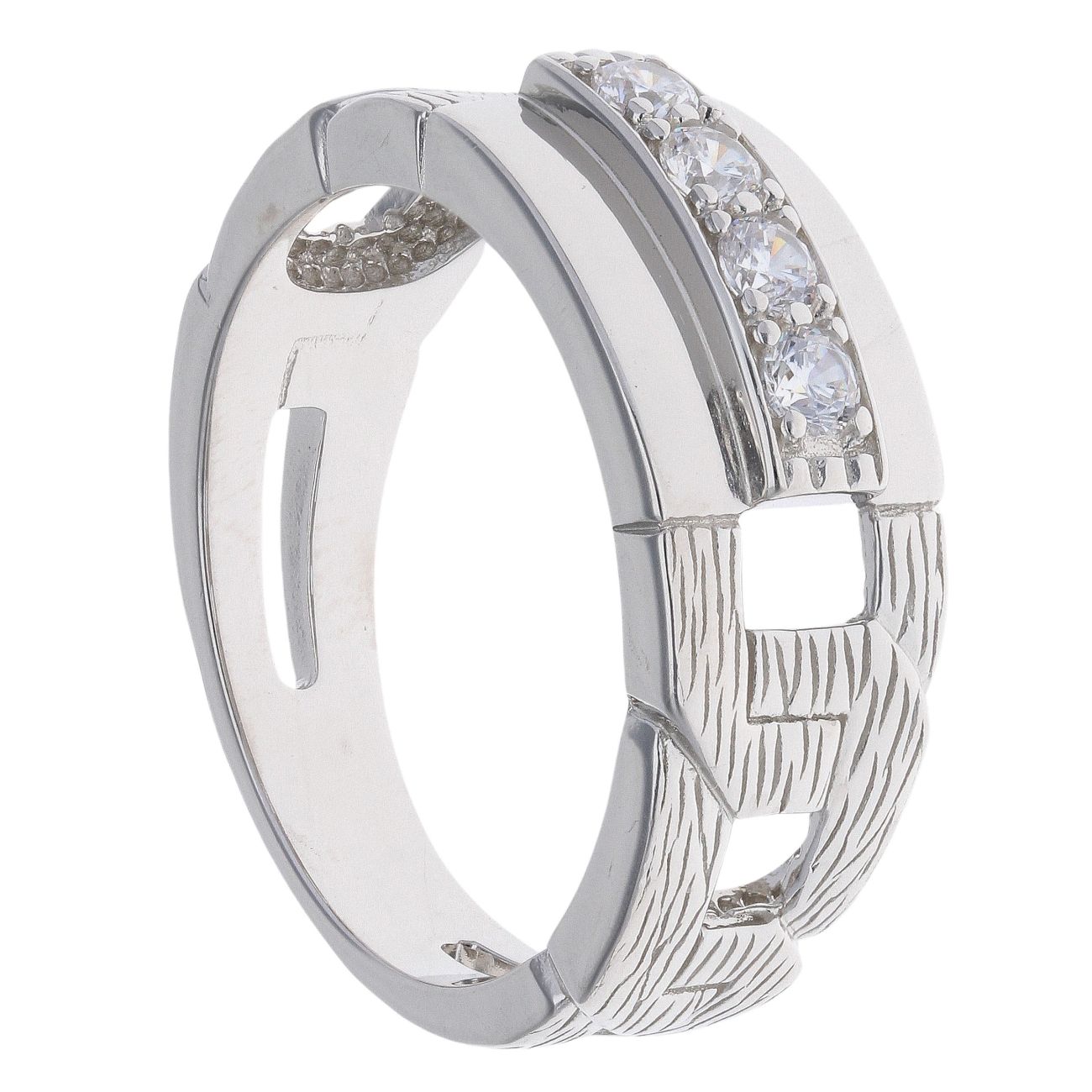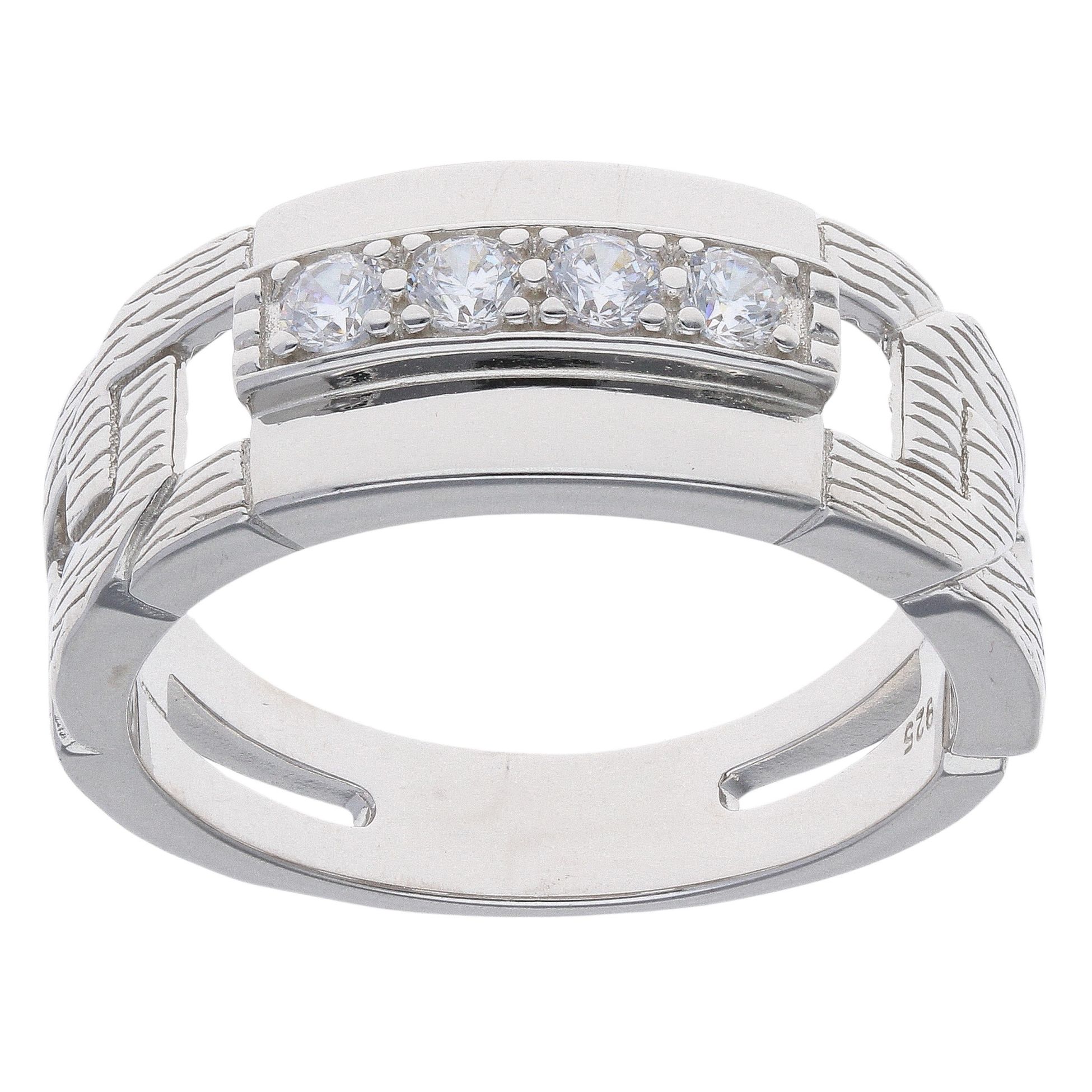 Silver Cubic Zirconia Fancy Curb Signet Ring by Icesia