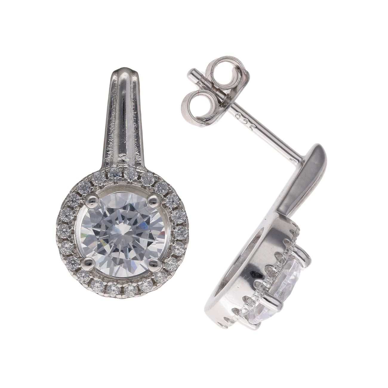 Silver Cubic Zirconia Halo Drop Stud Earrings