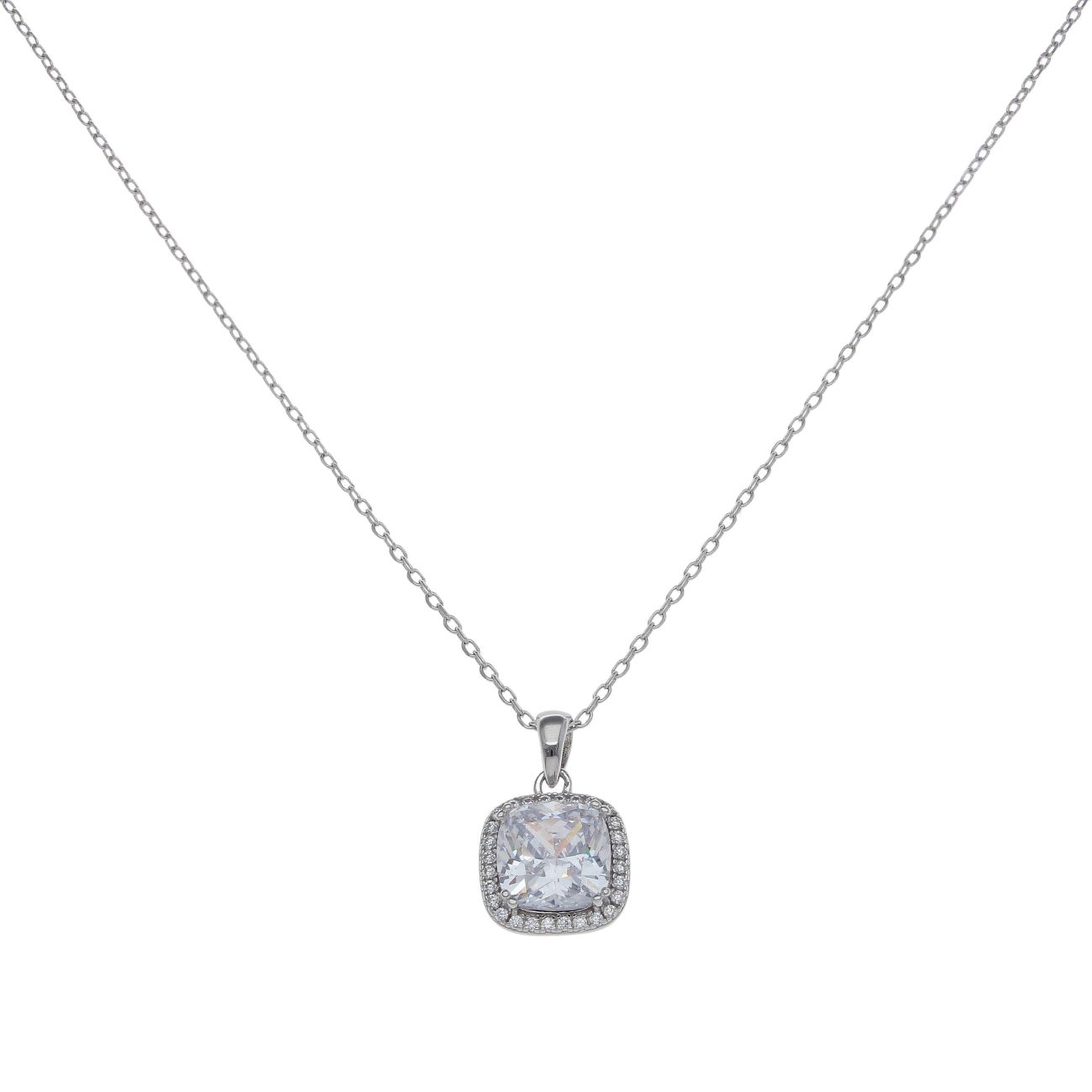 Silver Cubic Zirconia Halo Pendant and Chain 18" by Icesia