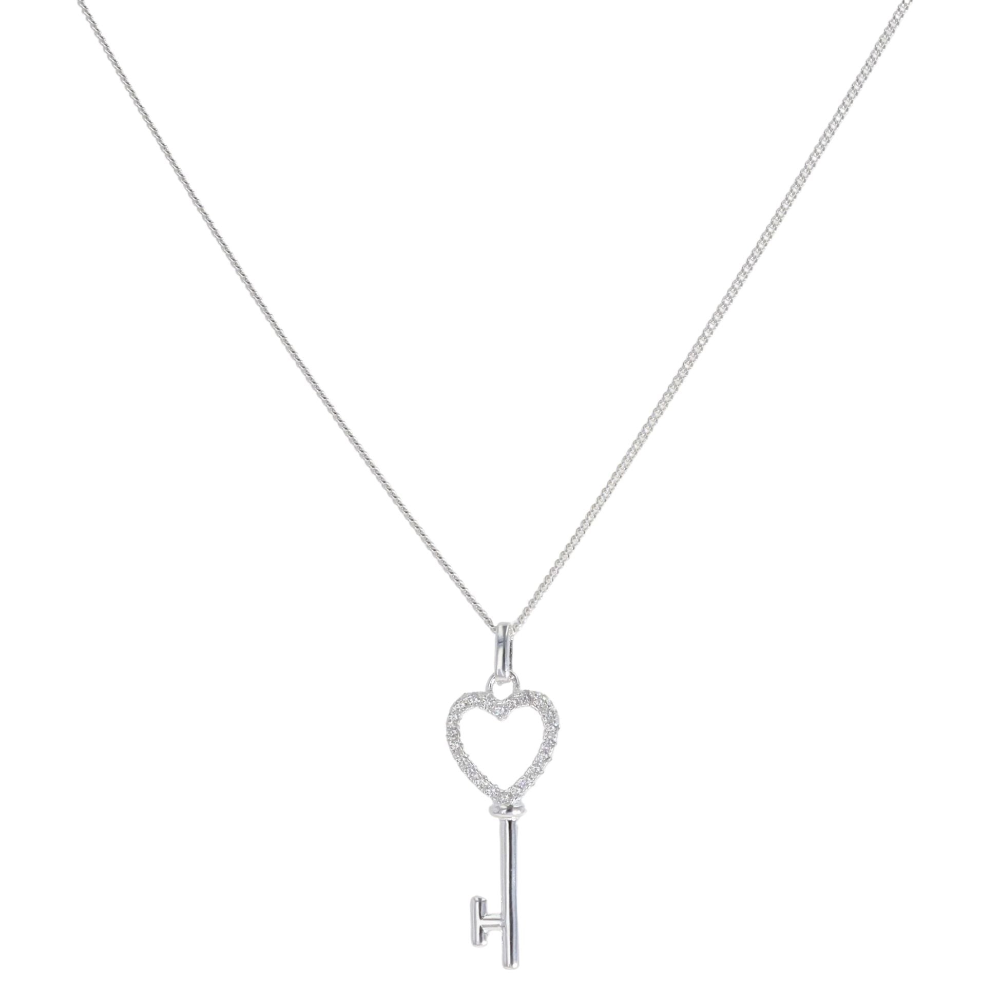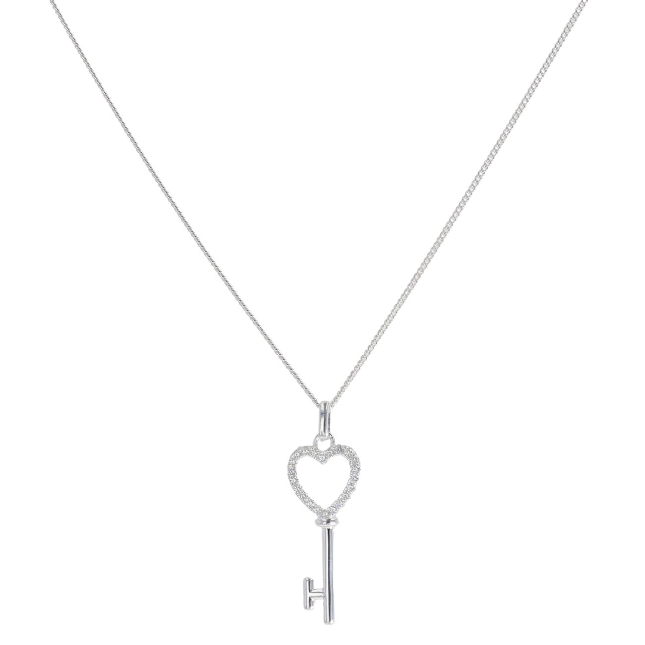 Silver Cubic Zirconia Heart Key Pendant And Chain 18" By Icesia