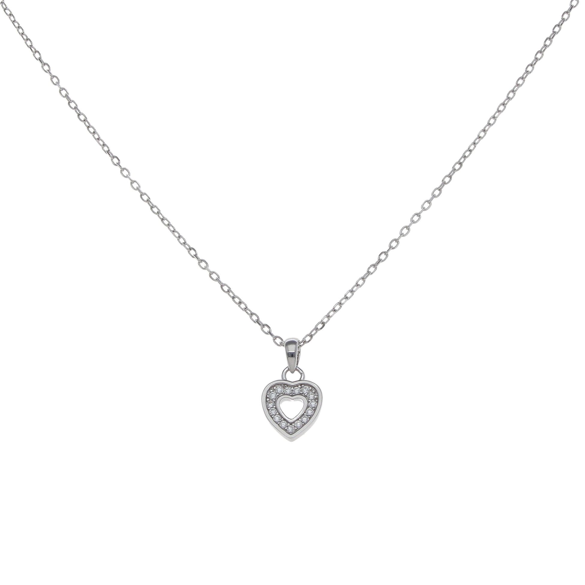 Silver Cubic Zirconia Heart Pendant and Chain 18" by Icesia