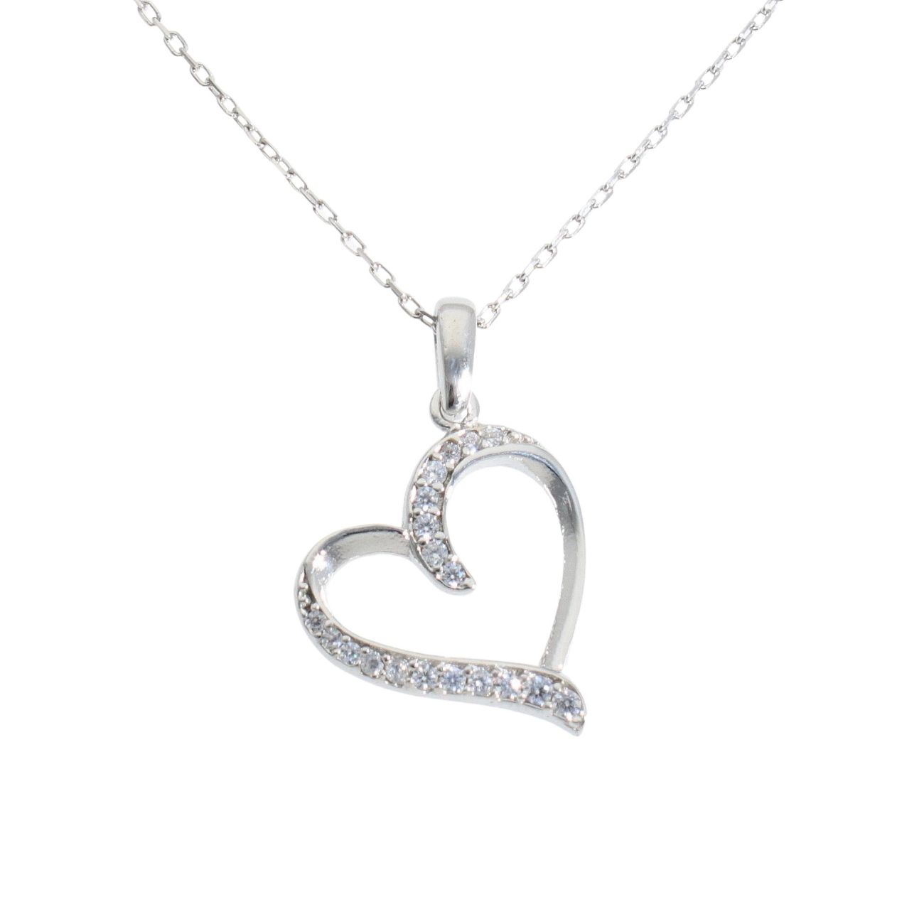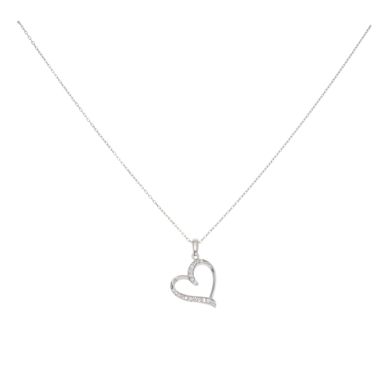 Silver Cubic Zirconia Heart Pendant And Chain by Icesia