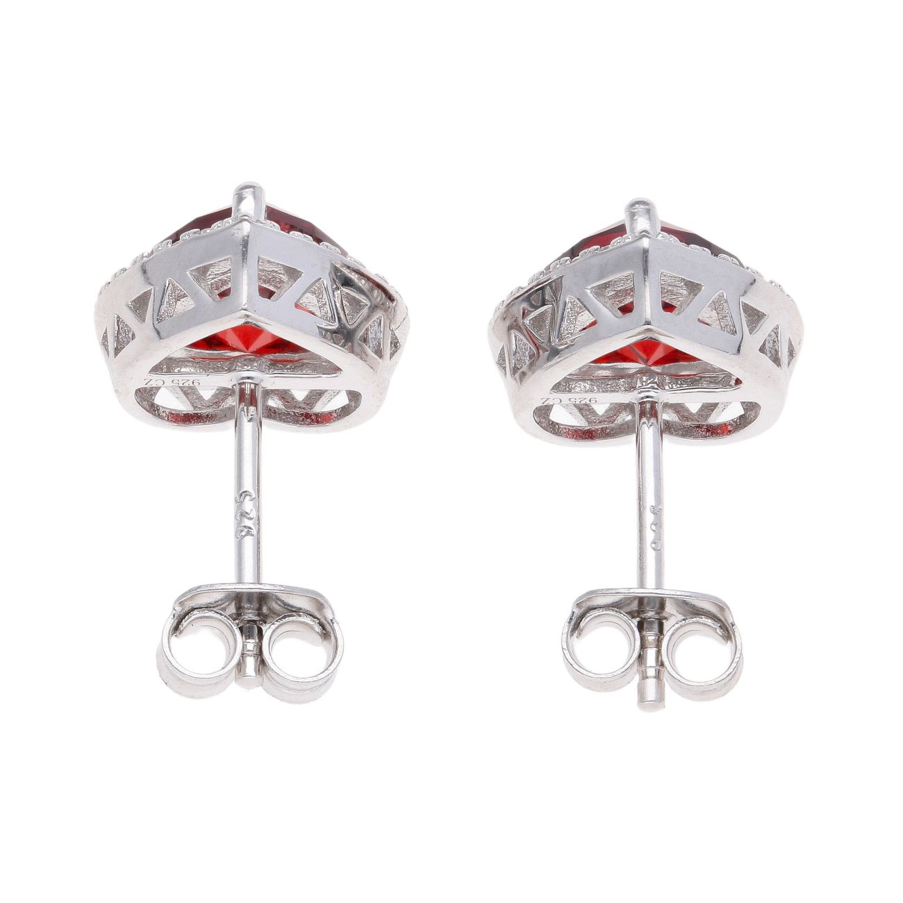 Silver Cubic Zirconia Heart Red Cluster Earrings by Icesia