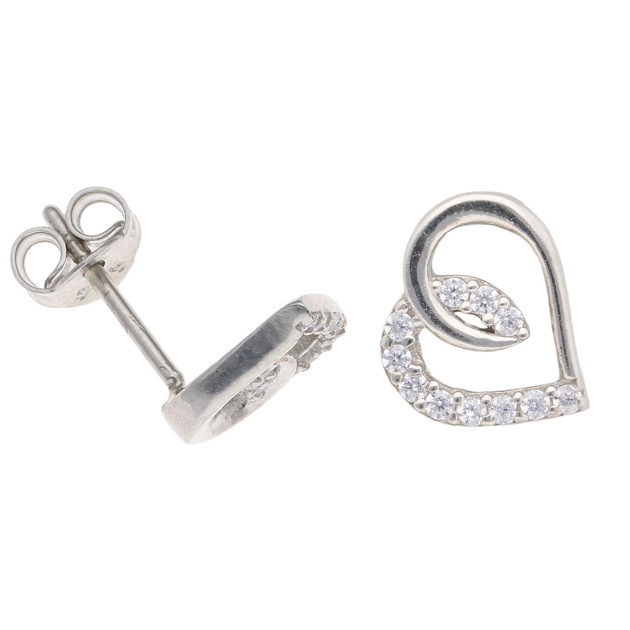 Silver Cubic Zirconia Heart Stud Earrings by Icesia