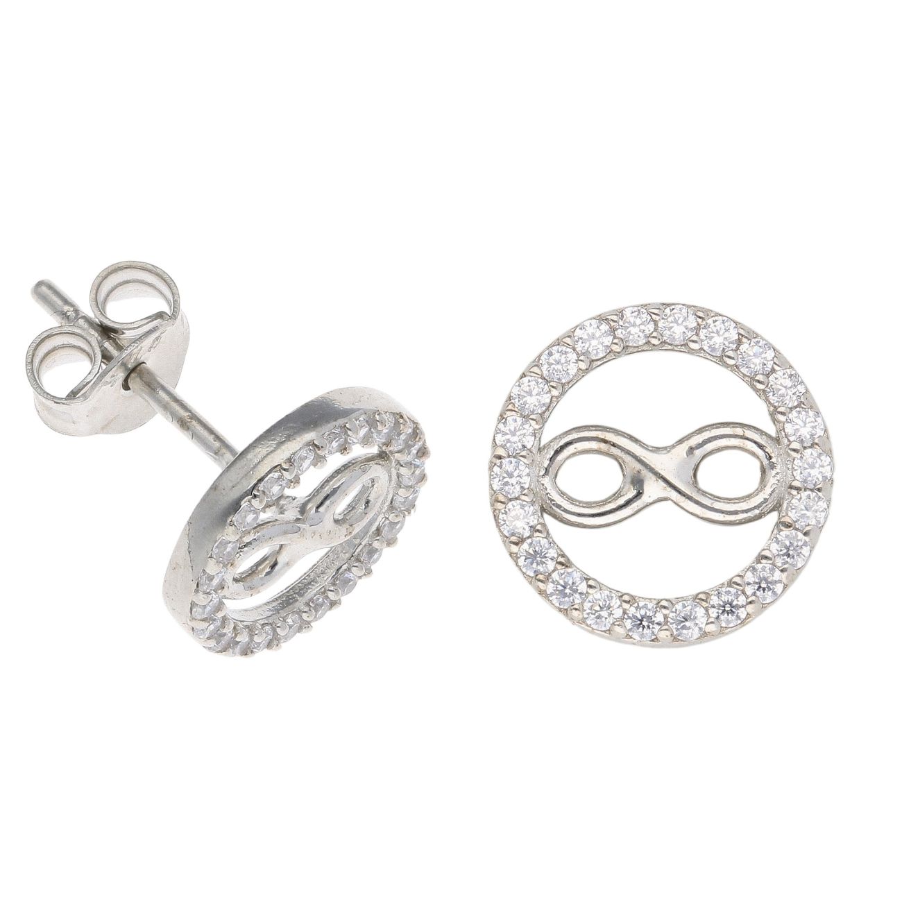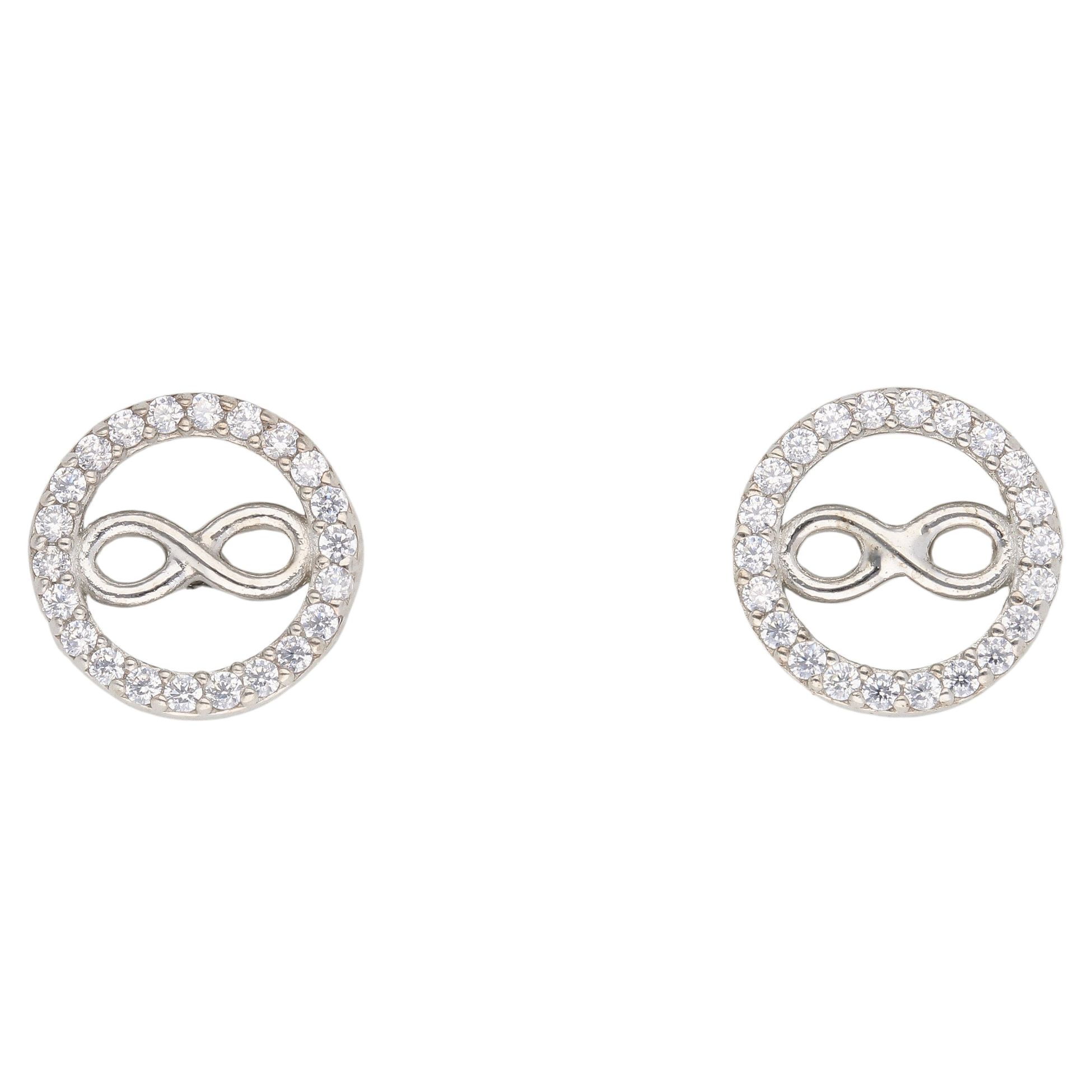 Silver Cubic Zirconia Infinity Circle Stud Earring by Icesia