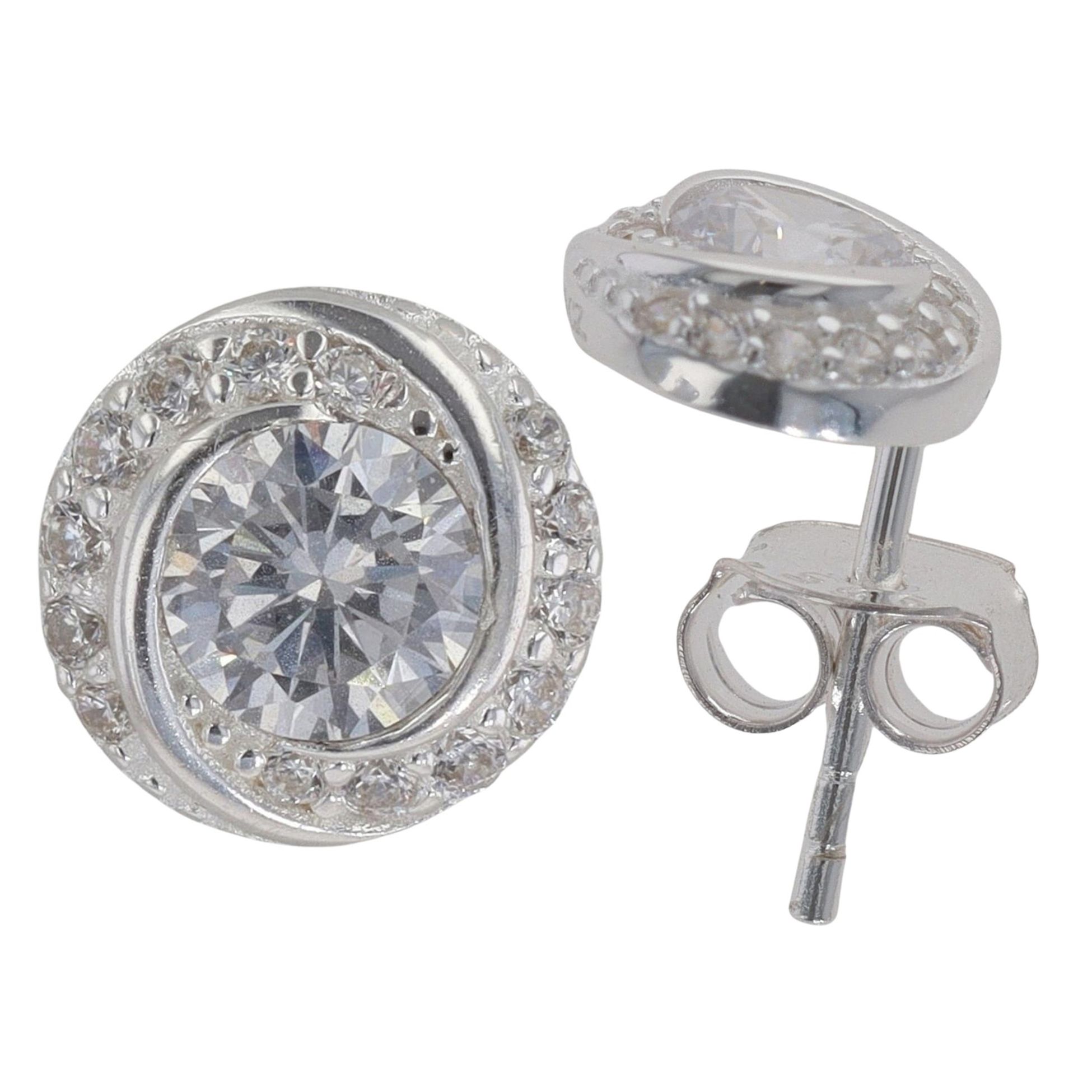 Silver Cubic Zirconia Knot Stud Earrings By Icesia