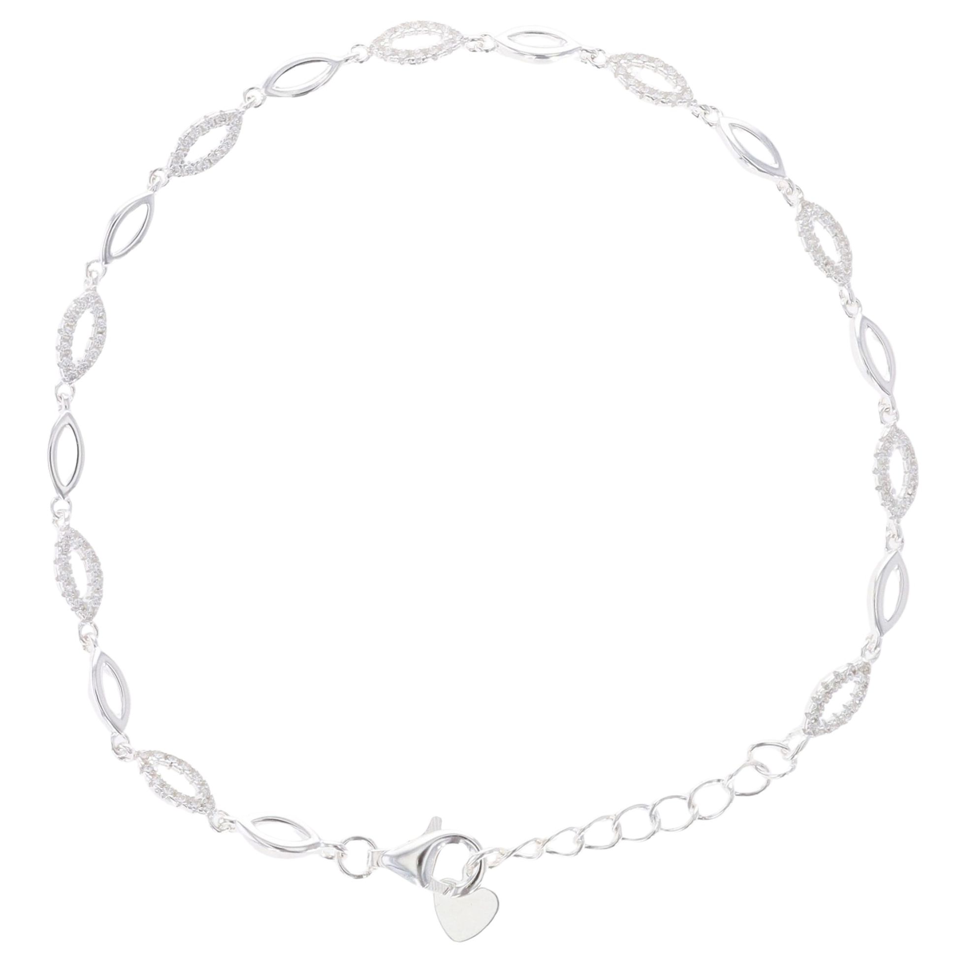 Silver Cubic Zirconia Marquise Bracelet 7.5" By Icesia