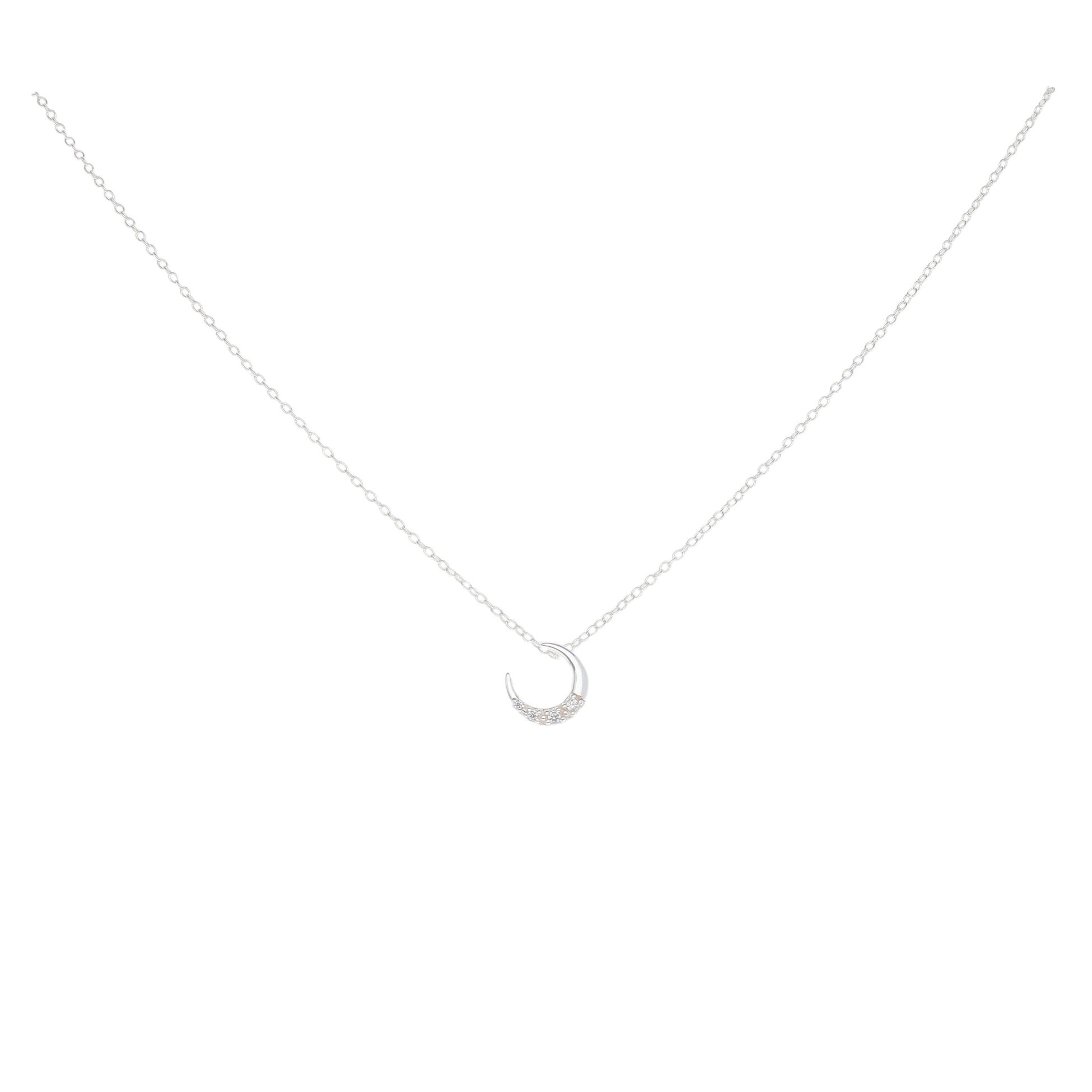 Silver Cubic Zirconia Moon Pendant And Chain 18"
