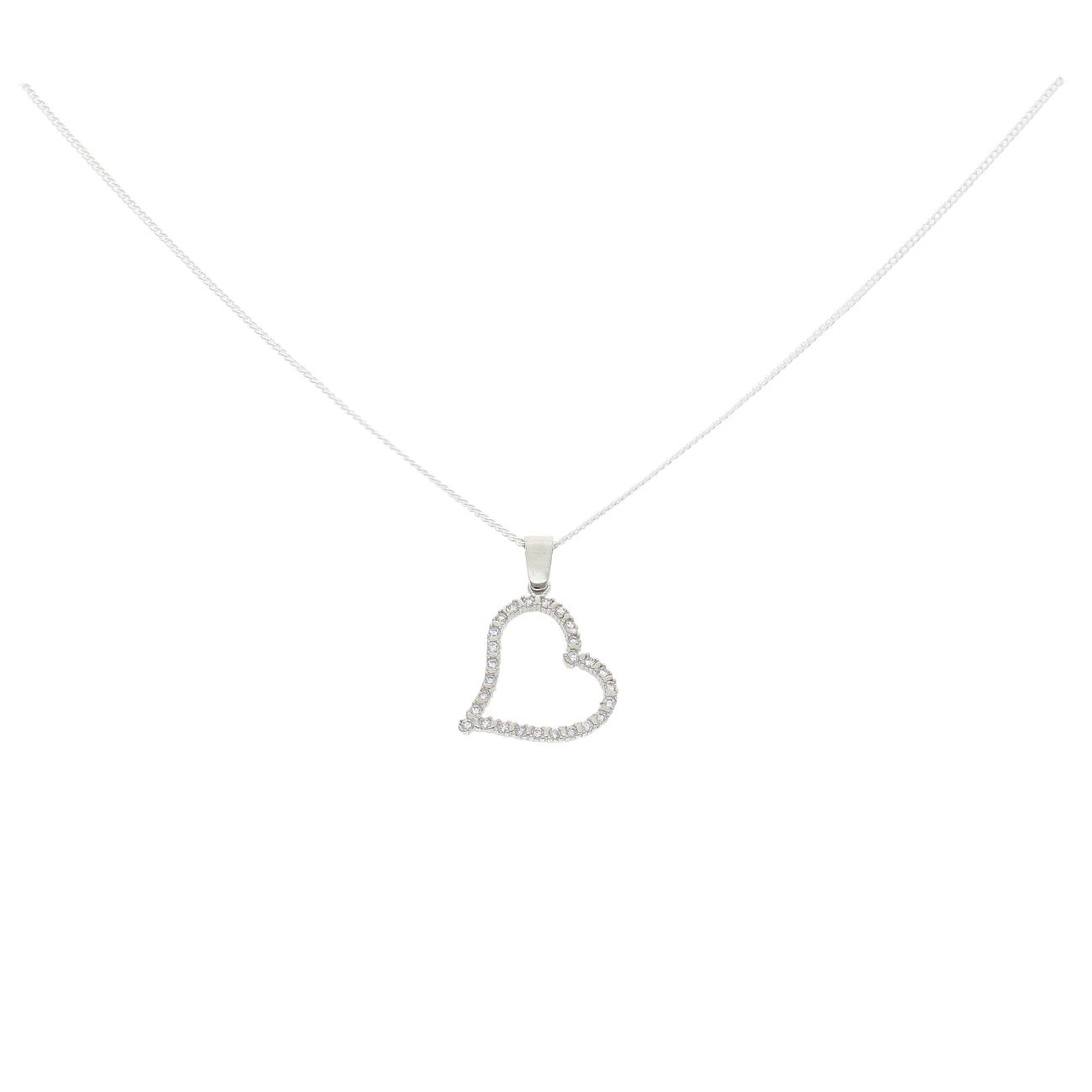 Silver Cubic Zirconia Open Heart Pendant And Chain 18"