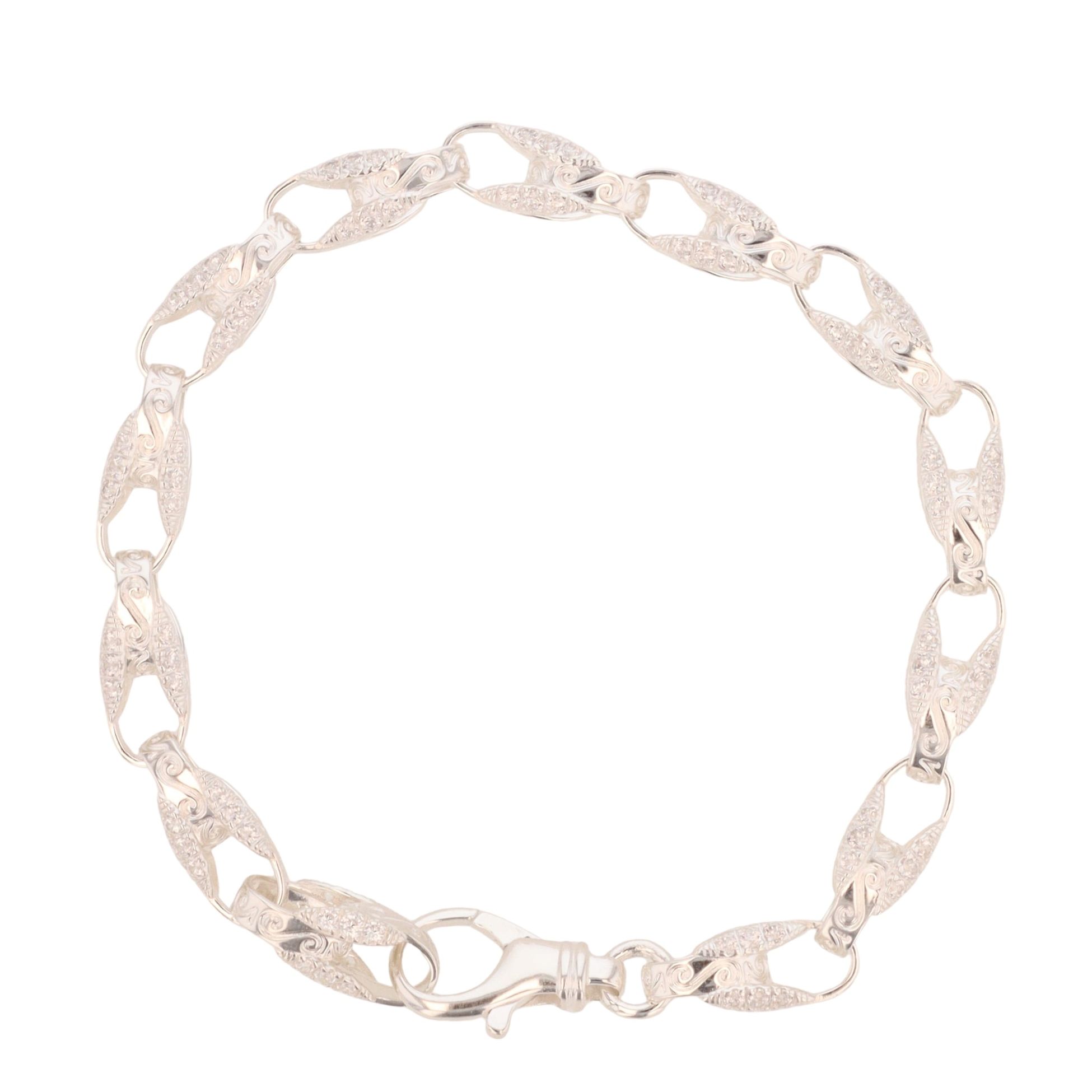 Silver Cubic Zirconia Patterned Tulip Bracelet 9" By Icesia
