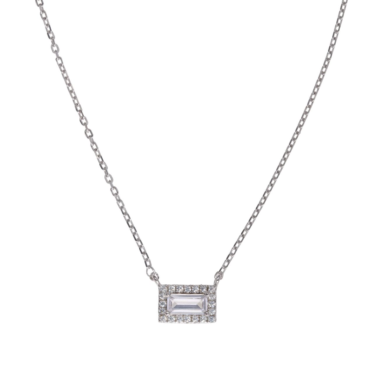 Silver Cubic Zirconia Rectangular Pendant and Chain 18"