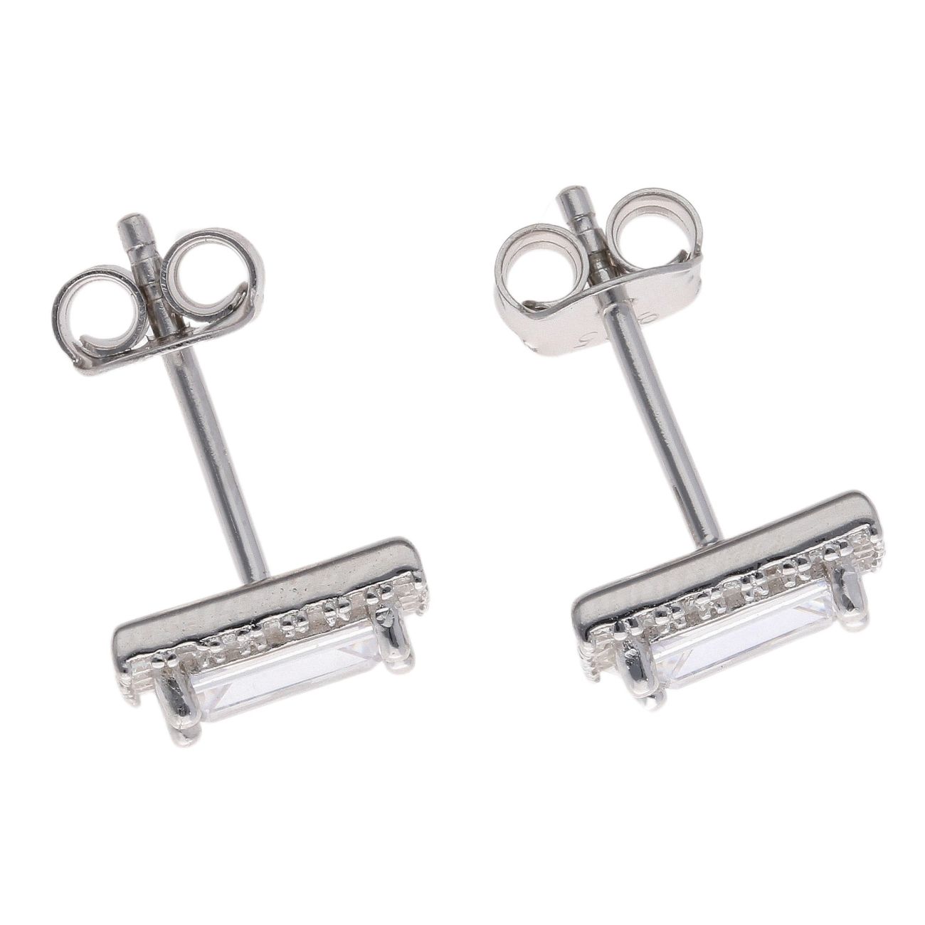 Silver Cubic Zirconia Rectangular Stud Earring by Icesia