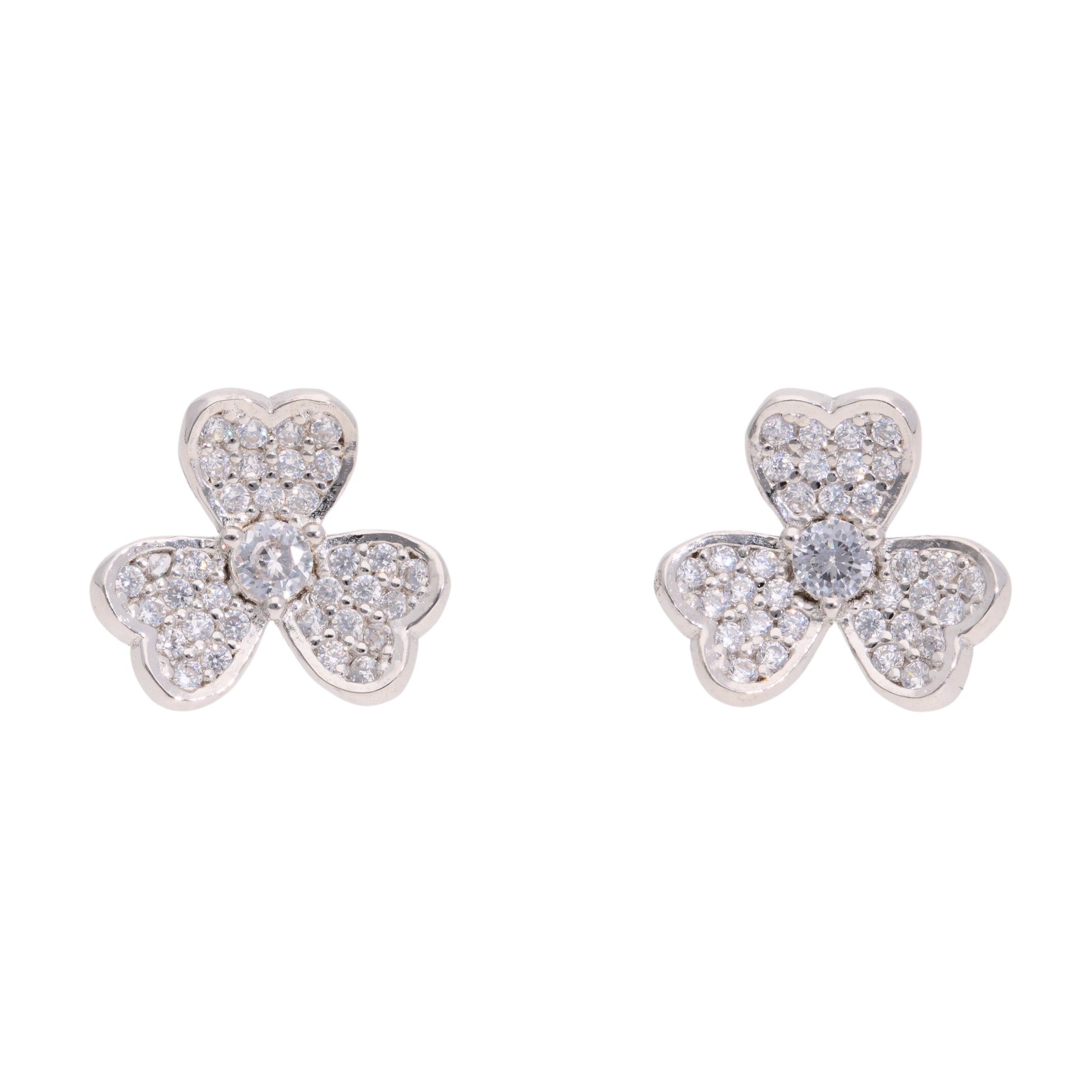 Silver Cubic Zirconia Three Leaf Clover Stud Earrings by Icesia