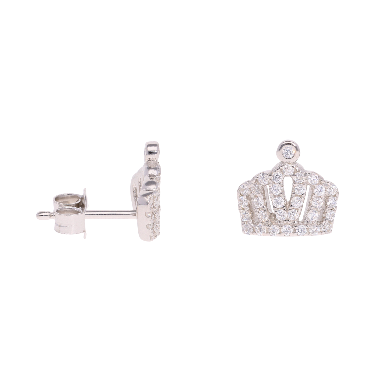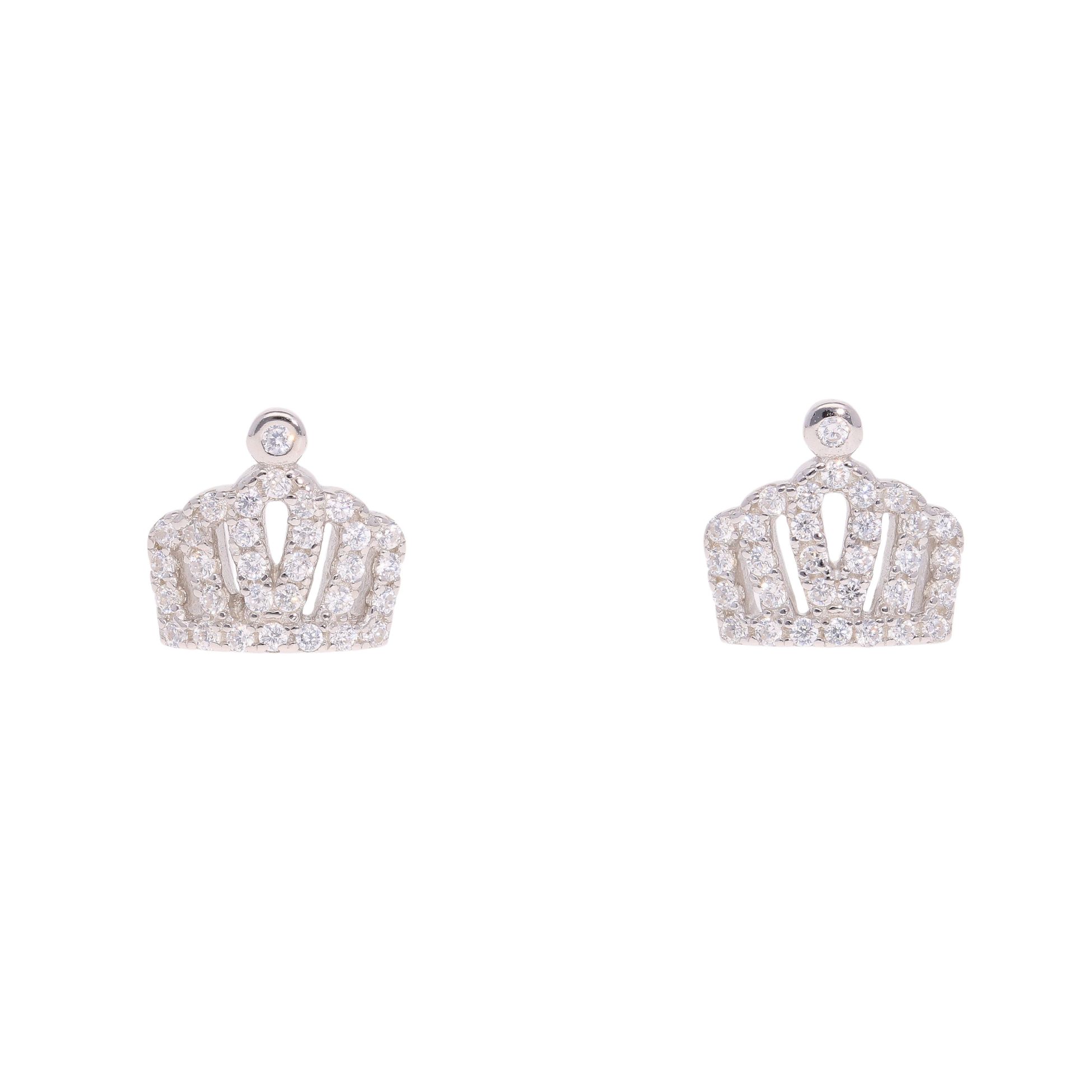 Silver Cubic Zirconia Tiara Stud Earrings by Icesia